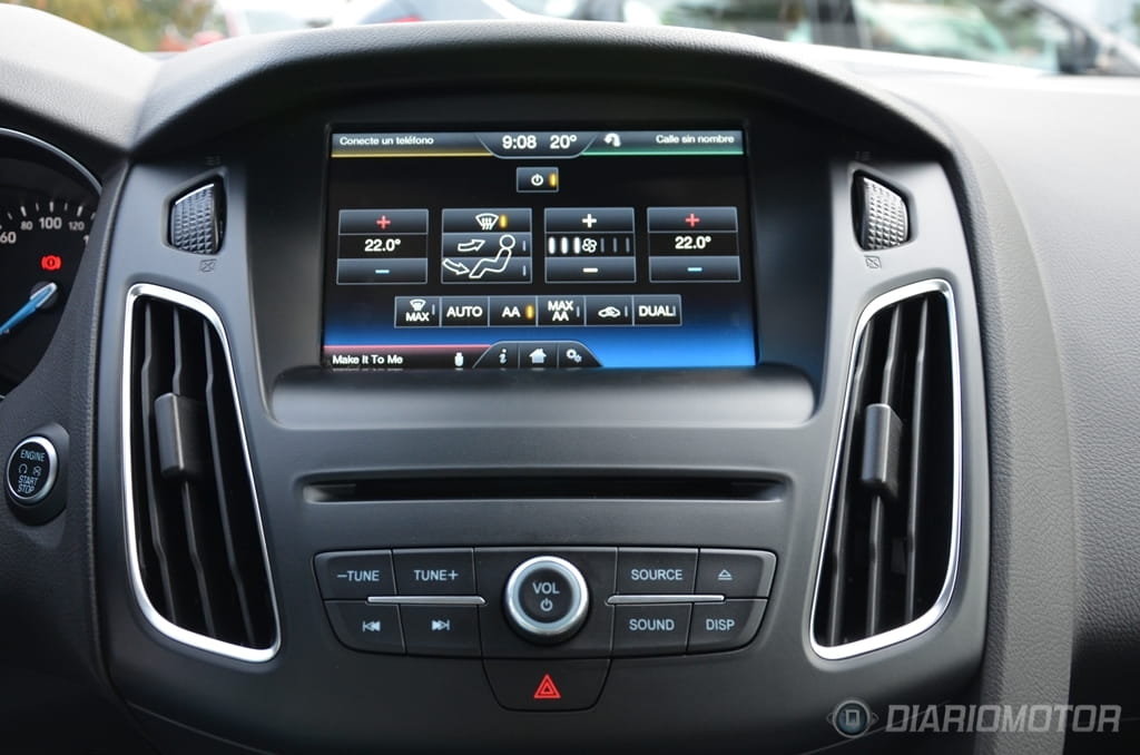 Si nos acomodamos en su interior, lo primero que nos llama la atención es el rediseño del salpicadero para hacer de la nueva interfaz SYNC 2 la principal y casi que única protagonista. Hablamos de una interfaz con pantalla táctil a color de 8 pulgadas que integra todas las funciones del vehículo, desde ordenador de a boro a climatización, pasando por el sistema de navegación, multimedia, teléfono, etc.