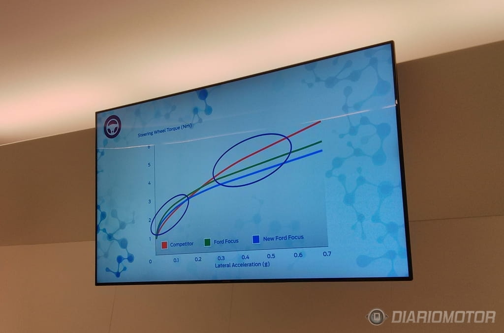 Desde Ford nos insistieron en que el renovado Ford Focus había centrado su rediseño en ser más ágil y más confortable. Aparentemente, estas dos ideas son contrarias, pero desde Ford nos explican como han conseguido alcanzar mejores cotas en ambos aspectos. Por un lado, Ford ha introducido una nueva dirección asistida eléctrica (EPAS), dirección que ahora ofrece mayor precisión y mejor tarado en cuanto a asistencia, pero que sigue sufriendo de un excesivo filtro que nos impide conocer qué sucede en el tren delantero.