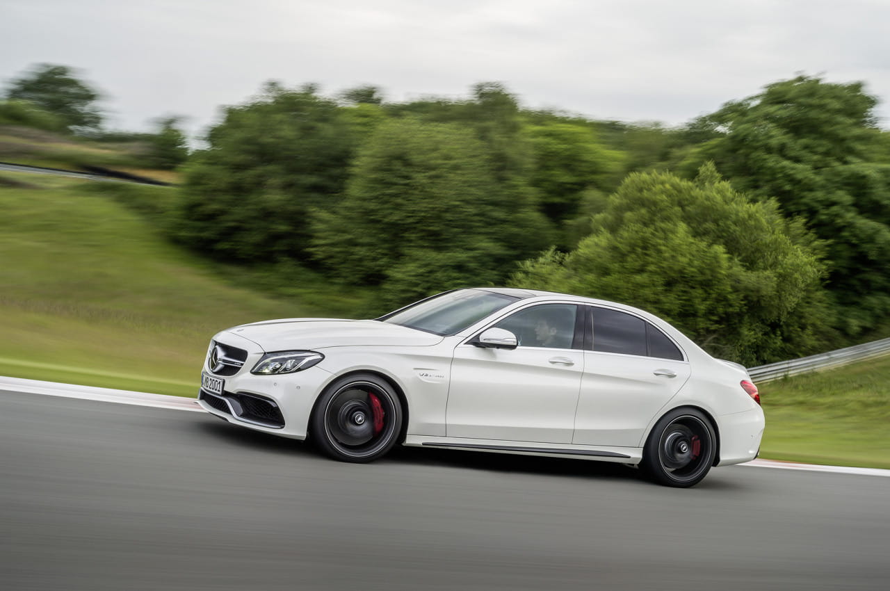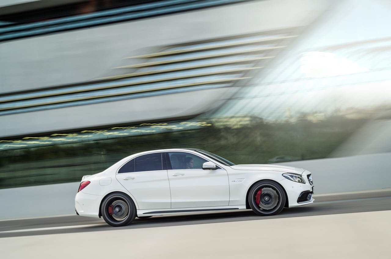 No se ha anunciado la posibilidad de un Mercedes-AMG C 63 con tracción a las cuatro ruedas. Únicamente estará disponible con un cambio deportivo de doble embrague, el AMG SPEECSHIFT MC 7, con levas de aluminio en el volante. Toda la gama Mercedes-AMG C 63 contará con una velocidad punta, limitada electrónicamente, de 250 km/h.