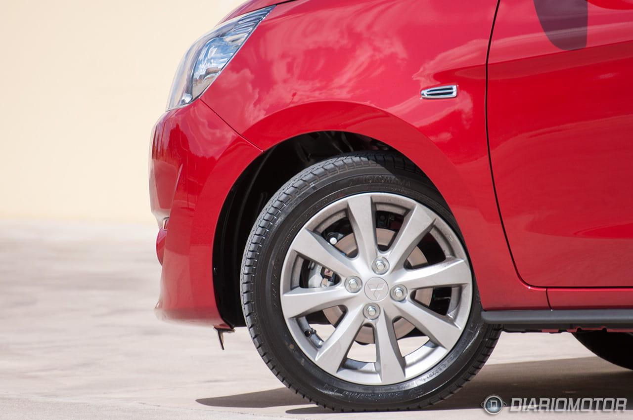En cambio, este Mitsubishi Space Star en su línea Motion equipa una llanta de aleación de 15”, y no hay opción a llantas de mayor diámetro, y sinceramente quedan perfectas en su diseño. A mi juicio es el tamaño perfecto para un coche como este – y he llegado a conducir con llantas de 18” en coches más pequeños – para no lastrar sus prestaciones, ni su maniobrabilidad.
