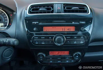 A bordo tampoco hay fuegos de artificios, el Mitsubishi Space Star emplea materiales sencillos, busca la funcionalidad, y los ajustes son correctos, sin más. Esta unidad ya viene equipada con manos libres Bluetooth y climatizador, pero carece de las últimas tecnologías que ya vemos en sus rivales, de equipos de entretenimiento avanzados con pantallas táctiles y navegador. Puede que esta no sea la prioridad de muchos compradores y, en tal caso, no hay problema. Pero sí es una pena que no exista esa opción y la única solución que tengamos sea la de equipar un sistema aftermarket, un navegador accesorio.