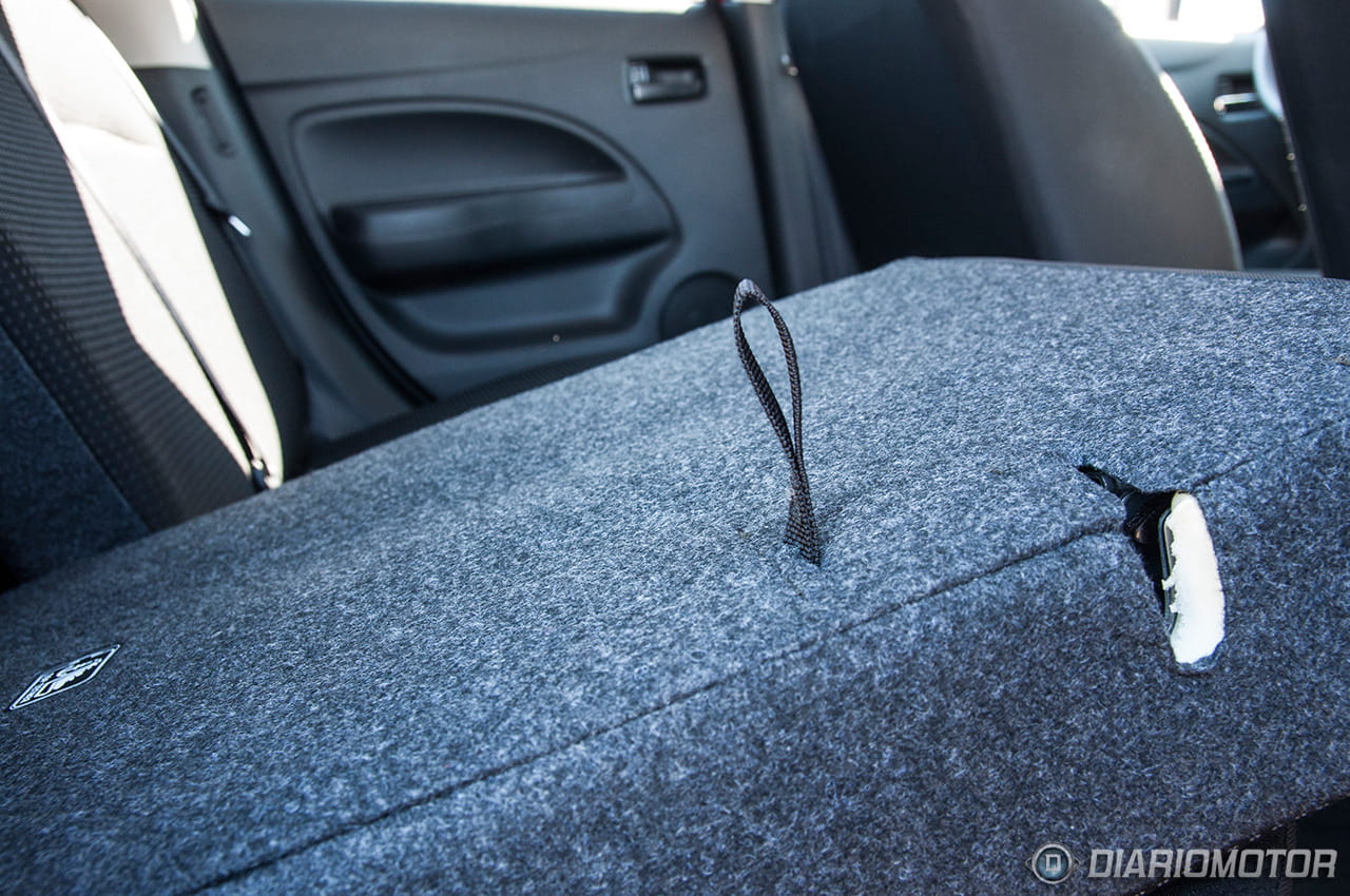 La banqueta posterior cuenta con respaldos abatibles en dos piezas (60:40). El sistema para abatir los asientos también es sumamente sencillo, basta tirar de un cordel en el interior del maletero y los respaldos ceden.