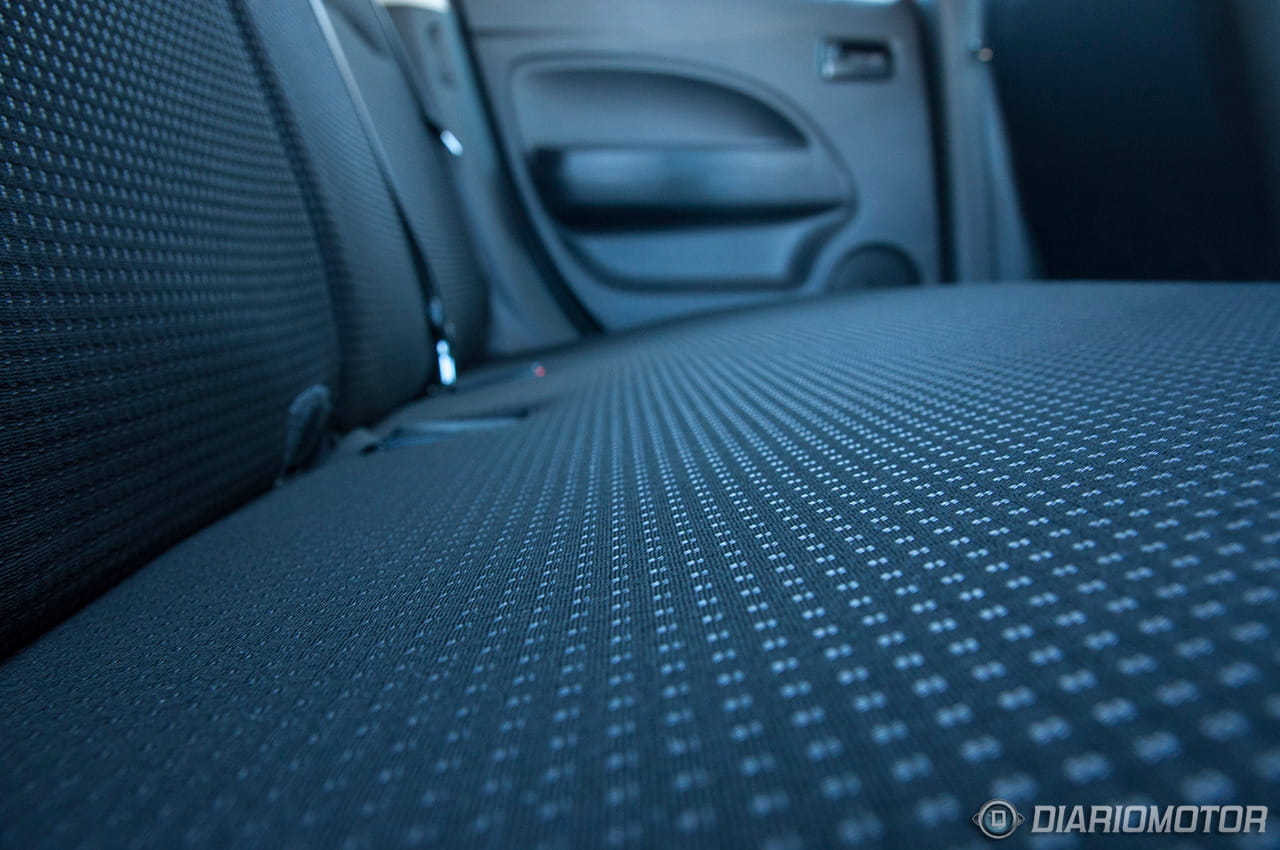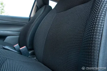 Los tapizados de los asientos son de tela, visualmente sencillos, y no son una maravilla en ergonomía, pero sí gozan de un mullido confortable. El puesto de conducción prima una posición con la base alta, lo cual agradecen muchos conductores para controlar la carretera y maniobrar bien, algo que es especialmente sencillo con un coche como este, con un voladizo frontal muy corto. Con 1,69 metros de altura, no tardé en encontrar una buena posición al volante, pero para alturas fuera de los rangos más comunes quizás convenga probar antes los ajustes del conductor. El volante cuenta con ajuste en altura, pero no en profundidad.