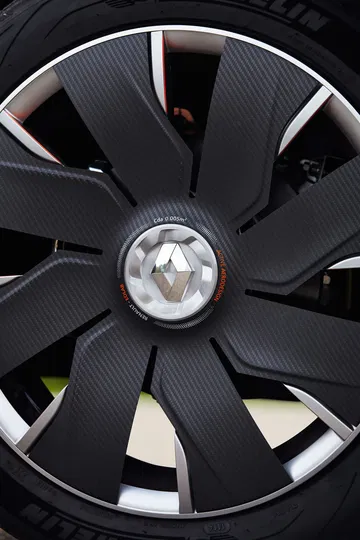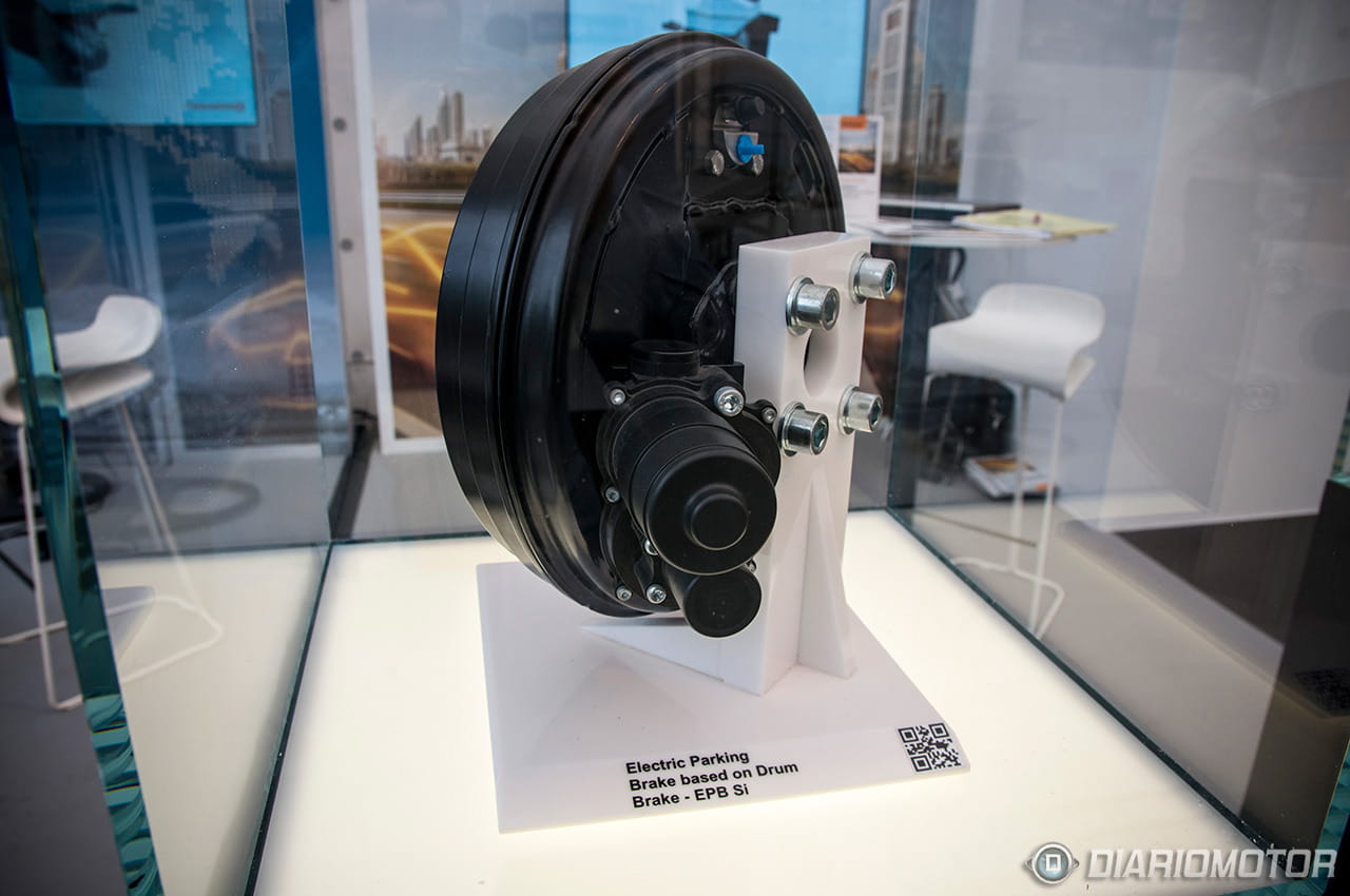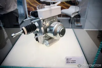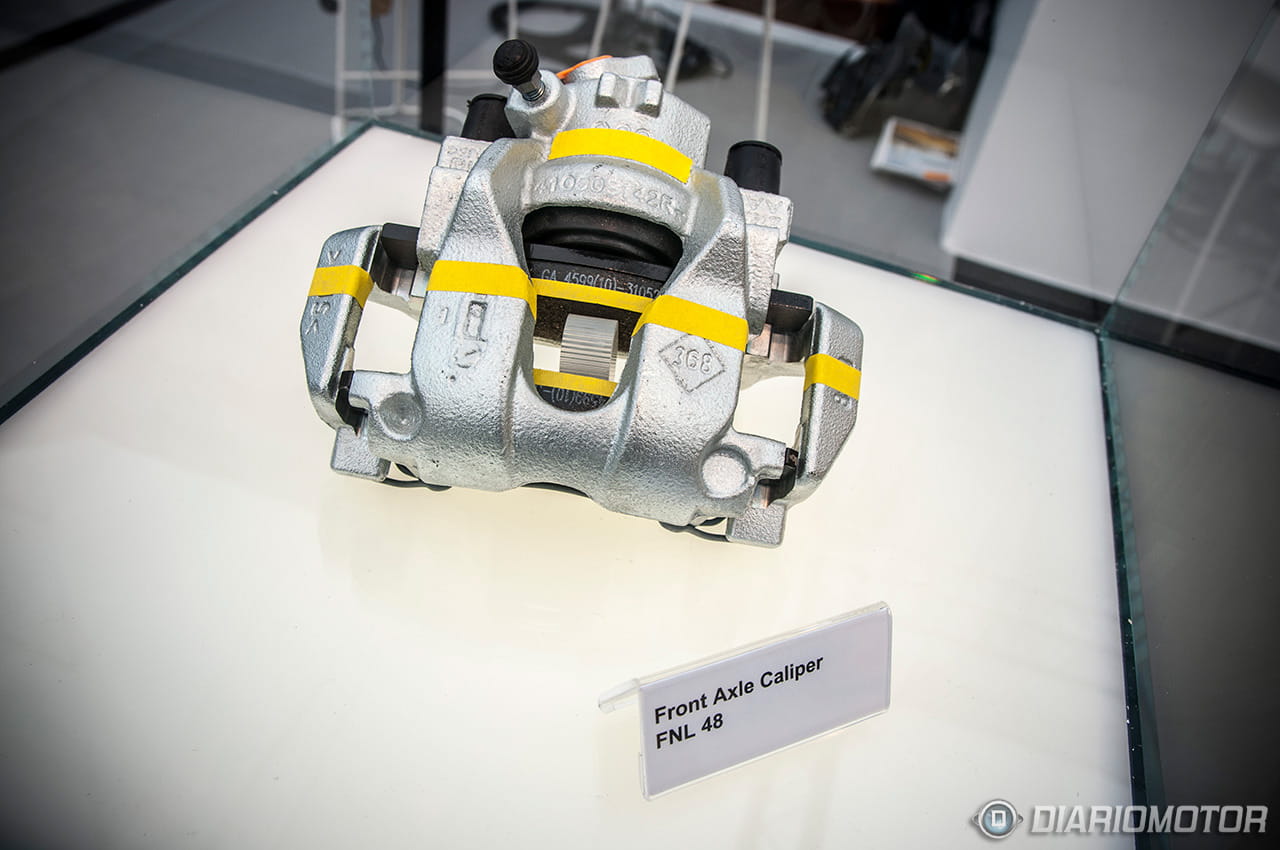 Renault ha recurrido a Continental para desarrollar un equipo de frenos más ligero y compacto, que carece de bomba y circuito de frenado y que en un equipo del tamaño de un pequeño tupperware integre todas las funciones de un sistema de frenos moderno, como el ABS, el ESP y el asistente de frenada de emergencia. Continental aún no nos ha mostrado las pinzas definitivas, pero sí estas convencionales, en las que las franjas amarillas hacen referencia al material que se ha eliminado para lograr que estas pinzas fueran más ligeras.