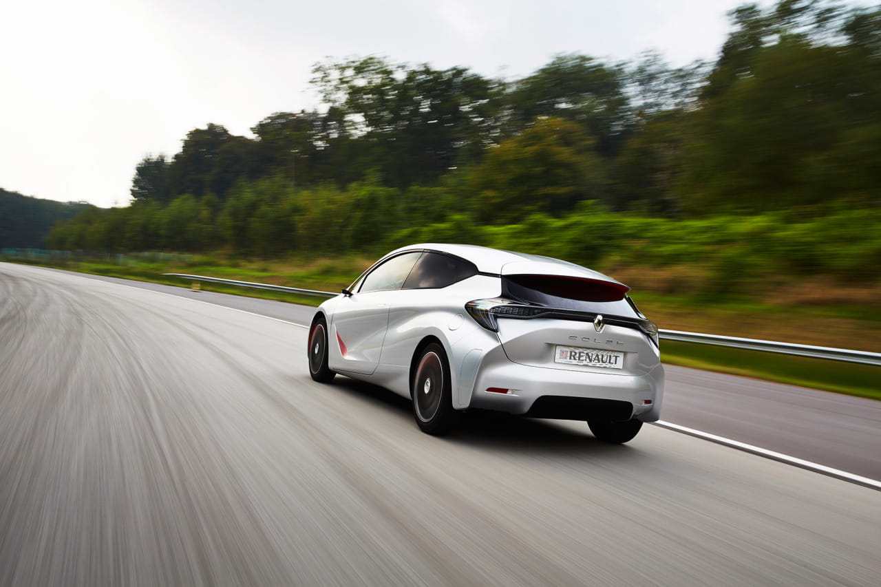 Al alcanzar los 70 km/h, y aunque físicamente no pueda verlo, sabemos que en la búsqueda de la máxima eficiencia aerodinámica el spoiler delantero ha descendido 10 centímetros y los flaps traseros se han cerrado (en la imagen superior podéis ver el aspecto del Renault Eolab con los flaps traseros abiertos y cierrados).