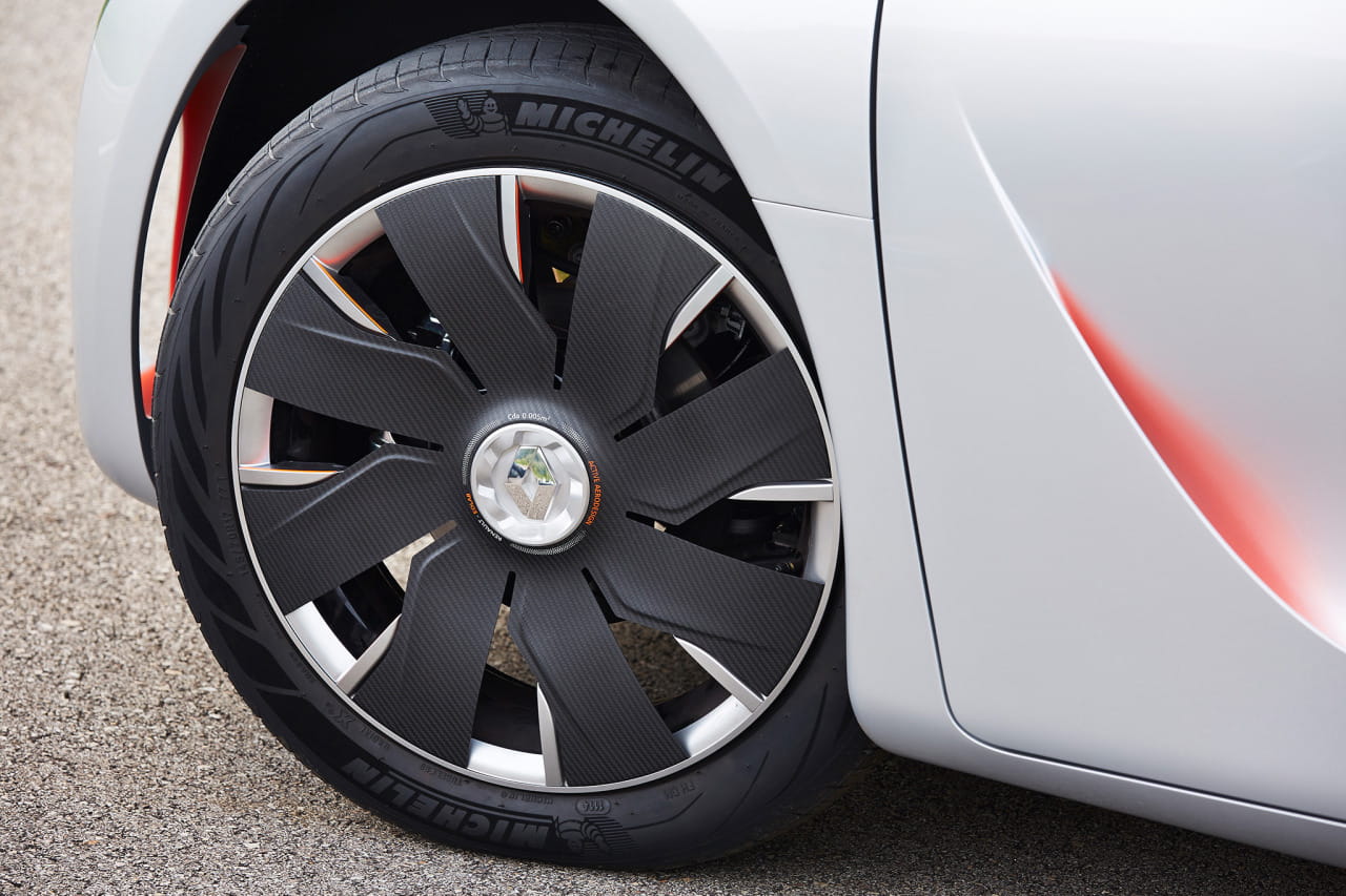 Os haré un resumen muy rápido. Debajo de una carrocería con aspecto tan futurista se esconde la base de un Renault Clio, en la que el habitáculo se ha adelantado ligeramente y el techo se ha rebajado. Bajo el capó nos encontramos con una mecánica híbrida enchufable, aunque tan compacta como un TCe de 90 CV. Para lograrlo, Renault ha tomado prestado el motor de tres cilindros del nuevo Renault Twingo (y los nuevos smart), un bloque de 999 cc que se ha inclinado 49º para hacer sitio a un motor eléctrico de imanes permanentes, con un rotor central y dos semi-estátor, y una innovadora transmisión de tres velocidades de la cual ya os hablábamos ayer.