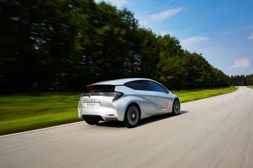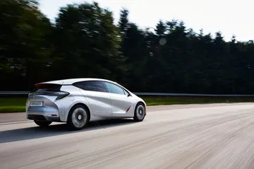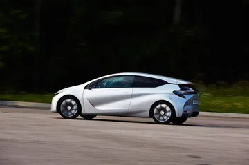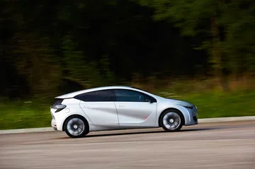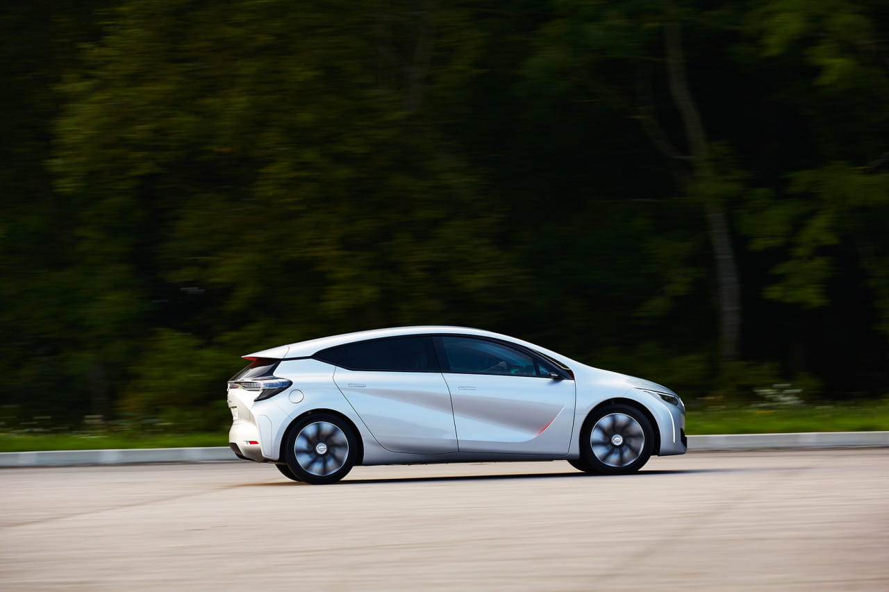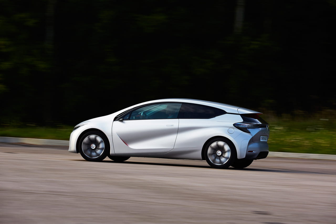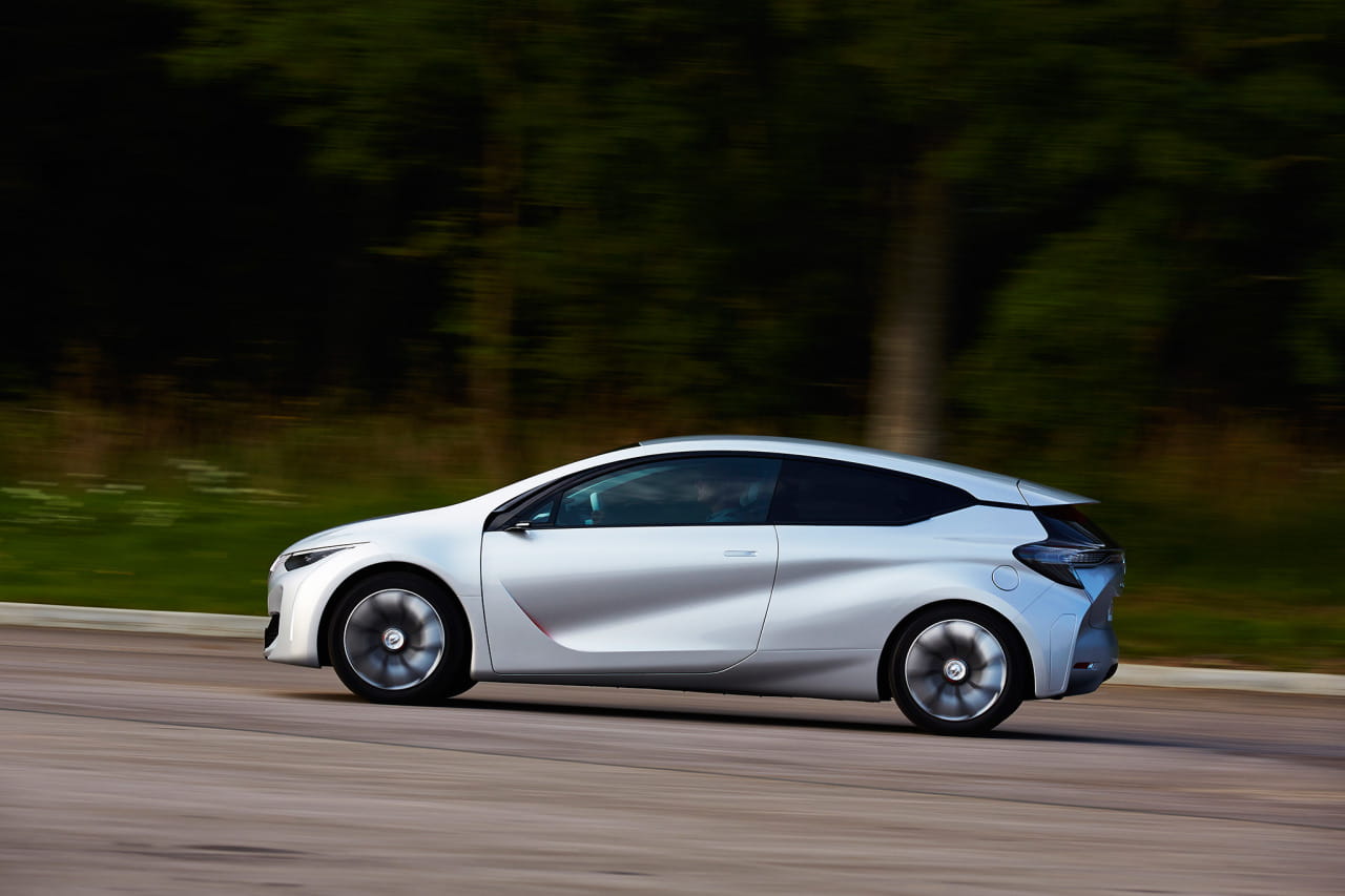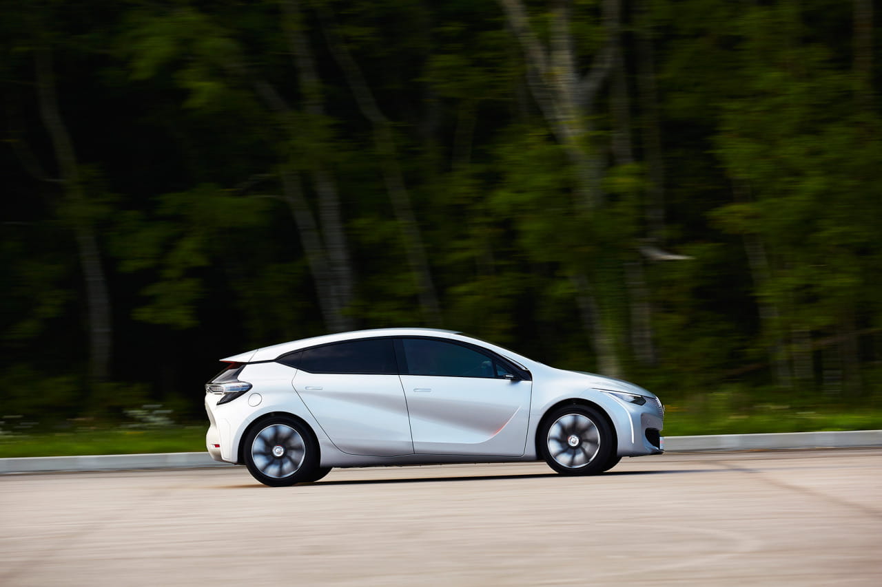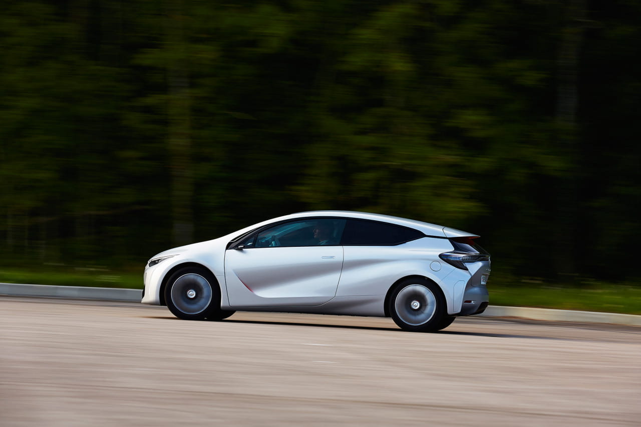 Poco después, según ganamos velocidad y empezamos a acelerar con más intensidad, siento como el motor térmico ha entrado en funcionamiento, su sonido es insistente, pero no demasiado molesto. Rápido me percato de una sensación parecida, y a la vez completamente diferente, a la que habitualmente tenemos en híbridos con CVT. Esa sensación de acelerar y que el sonido del motor y el régimen de revoluciones no vaya acompasado con la velocidad que gana el coche y con la intensidad con que hundes el pie derecho en el acelerador. Pero al contrario que un híbrido CVT, en el que pisar con insistencia el acelerador significa que el régimen de revoluciones se eleve en lo más alto hasta que aliviemos la presión sobre el pedal, en este prototipo el sonido del motor se mantiene constante aunque sigamos acelerando, puesto que no está proporcionándonos energía para desplazarnos sino recargando las baterías para maximizar su autonomía.