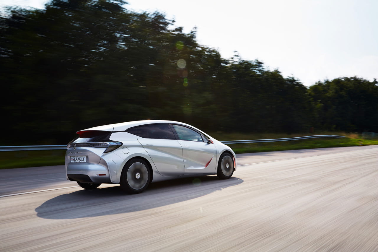 Sobre los 80 o 90 km/h se nota un “clac” bajo el capó y un pequeño altibajo que nos recuerda que la tercera marcha se ha engranado y que ya no solo nos estamos desplazando por acción del motor eléctrico, sino también por la acción de un motor de gasolina de tres cilindros. El altibajo no es comparable al de un cambio de marchas por convertidor de par, es un resbalamiento muy ligero que se aprecia sobre todo en el sonido que se produce al engranar esa tercera marcha. Recordemos que aún es un prototipo, y que Renault tiene que pulir muchos detalles y en general todas las piezas que componen este automóvil han sido ensambladas de manera artesanal. Renault promete que el momento en que se engrane el motor térmico en esta peculiar transmisión será probablemente más suave que la transición entre marchas de un cambio de doble embrague. Tomamos nota de ello.