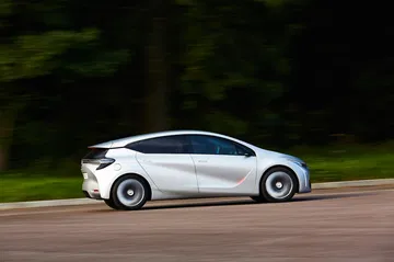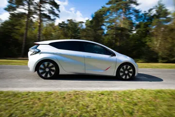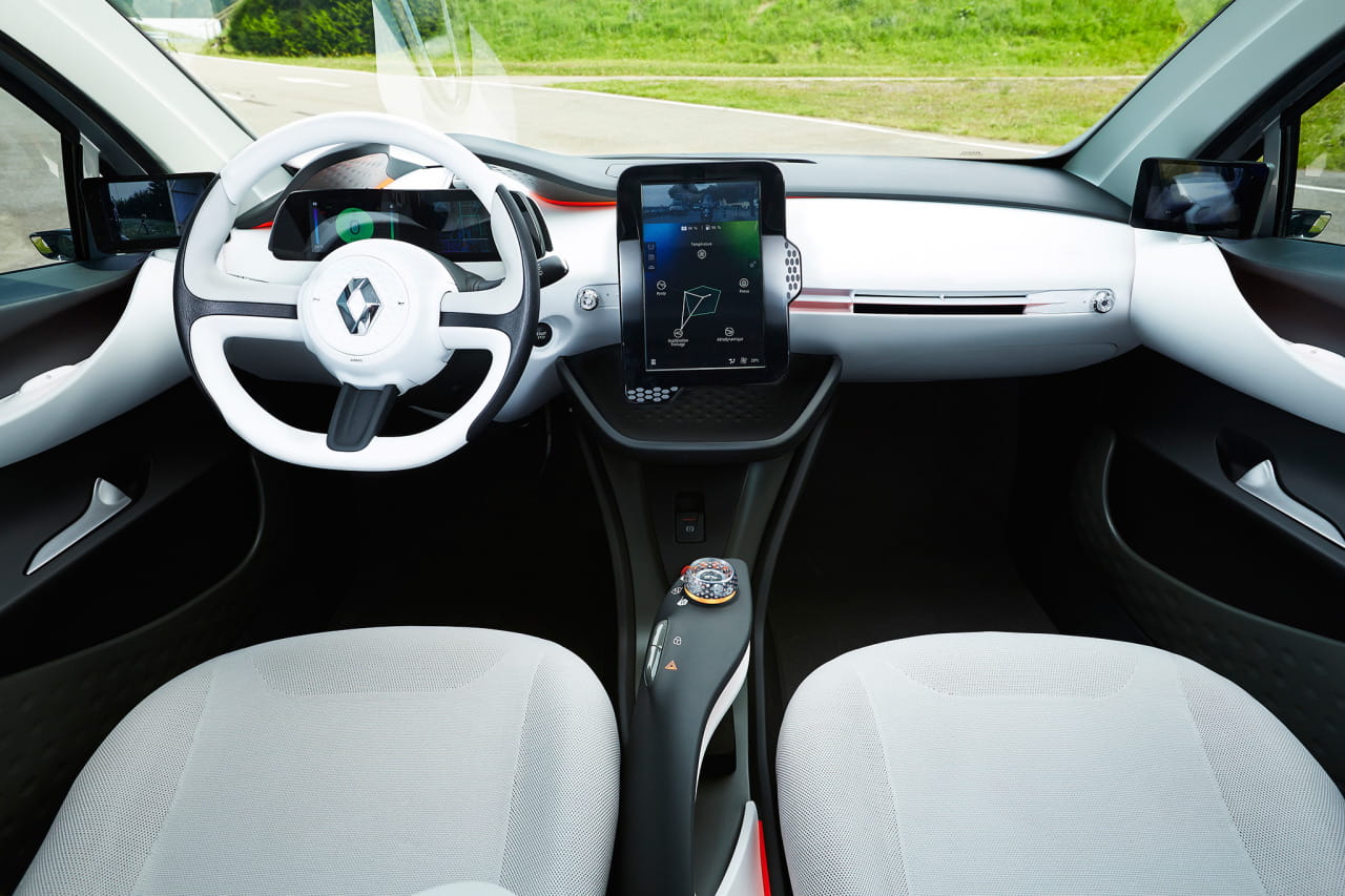 Incluso para alguien que ya está muy acostumbrado a conducir automóviles de muy diversa índole, es difícil no sentirse sobrecogido y superado por la situación en un coche como este. El cuadro de mandos ha sido sustituido por unas pantallas, no existe el cuentarrevoluciones, en el centro del salpicadero hay un tablet que puedo girar para utilizarlo en posición horizontal y vertical y, lo que resulta aún más desconcertante, ¡no hay retrovisores! En su lugar dispongo de dos pantallas, tamaño iPhone 6 Plus, que sujetas al marco del parabrisas me muestran imágenes fieles de lo que sucede a mi alrededor. Y he de reconocer que la experiencia me resultó como mínimo gratificante, aunque solo tuviera que utilizar estas cámaras para controlar al Renault Scenic que nos seguía, a modo de camera car, con un fotógrafo sacando medio cuerpo por el techo practicable para retratarnos en movimiento.
