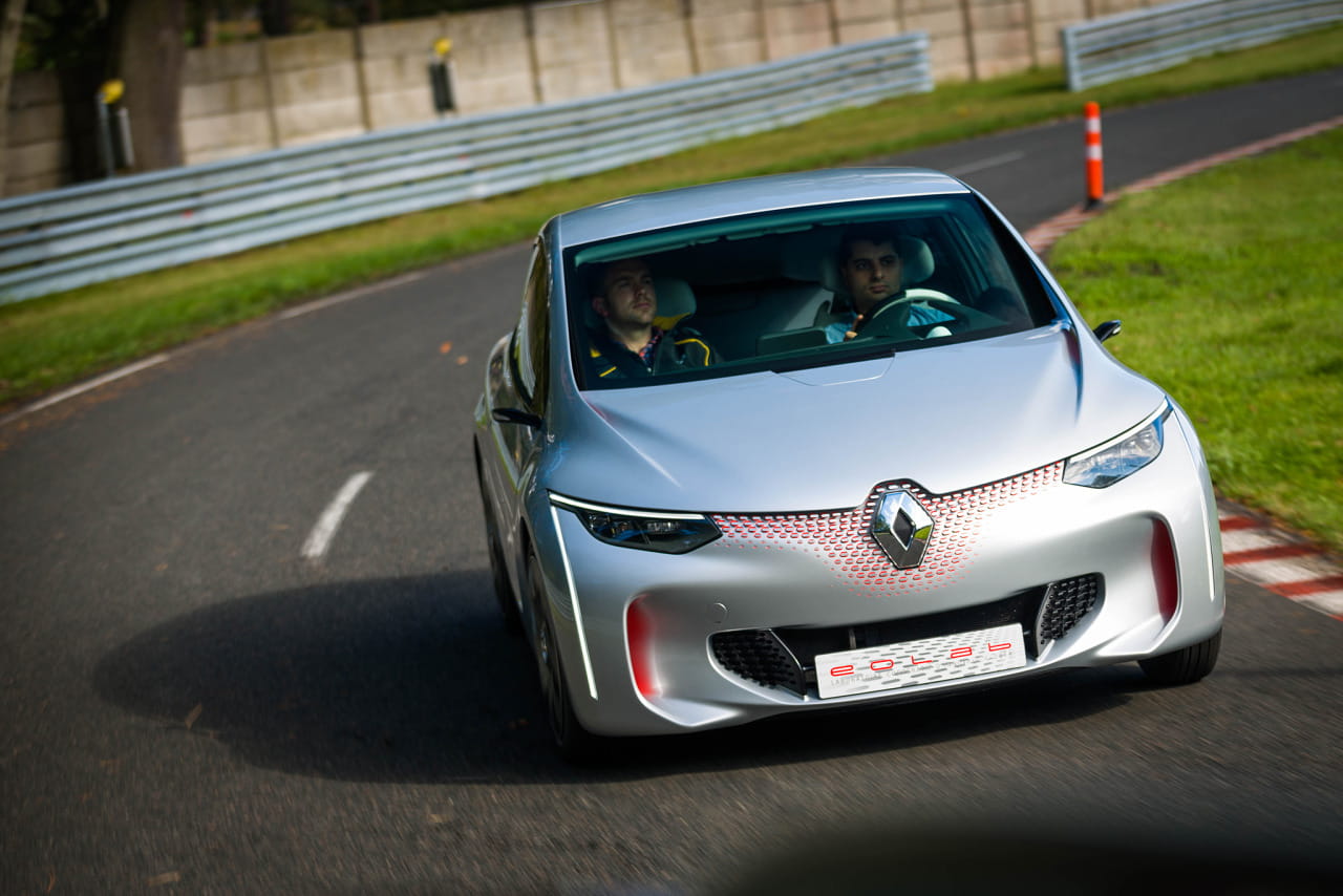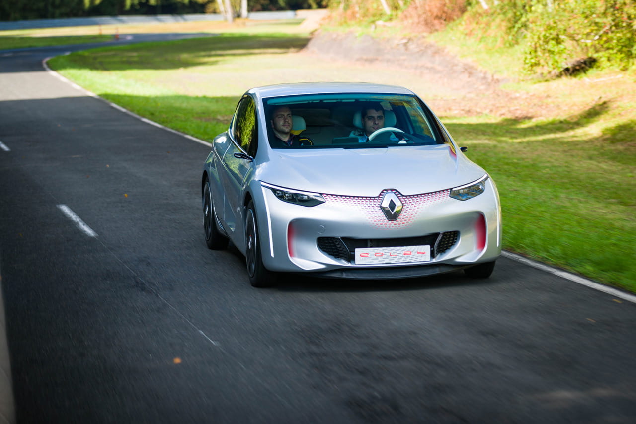 Conducir un prototipo siempre resulta gratificante, aún incluso siendo conscientes que jamás veremos un Renault Eolab en los concesionarios, ni nada que a priori se le parezca. Pero lo más importante es que sabemos que el Renault Eolab que hemos probado es un auténtico laboratorio rodante, un coche plenamente funcional en el que Renault ha estrenado más de cien innovaciones que irán introduciéndose en sus modelos en los próximos ocho años y muchas de las cuales comenzaremos a ver muy pronto, en 2016. En definitiva, conducir el Eolab es gratificante, aún más si os digo que este coche tenía una puesta a punto picante, prácticamente de pequeño GTI, y que los ingenieros encargados de él nos dieron vía libre para acelerar cuanto quisiéramos en un circuito cerrado.