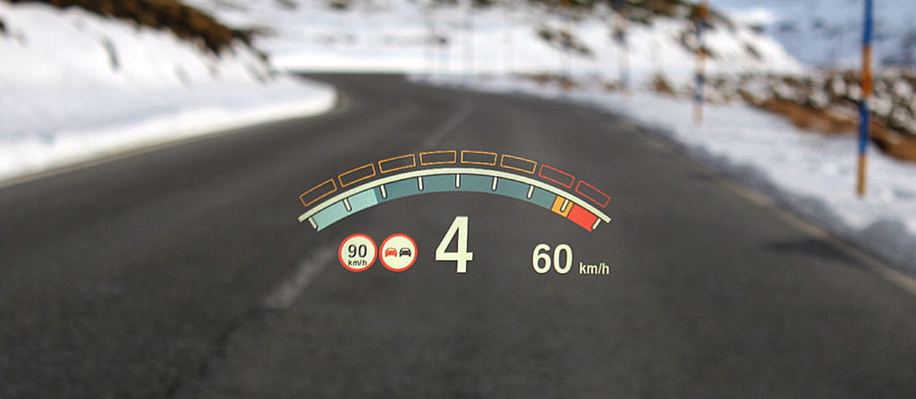 En un futuro próximo, los Head-Up Display pretenden revolucionar por completo la experiencia de conducción. El primer paso ya se está dando y consiste en aumentar la superficie del parabrisas utilizada para proyectar la información. El Jaguar XE, por ejemplo, ya emplea un sistema más avanzado para proyectar la información basado en láser. Pero el verdadero salto cualitativo lo daremos cuando empecemos a ver la proliferación de pantallas transparentes en el parabrisas, capaces de ocupar una gran extensión, o toda la extensión disponible del parabrisas, para mostrarnos información.