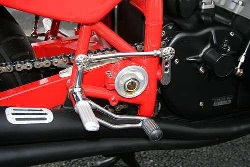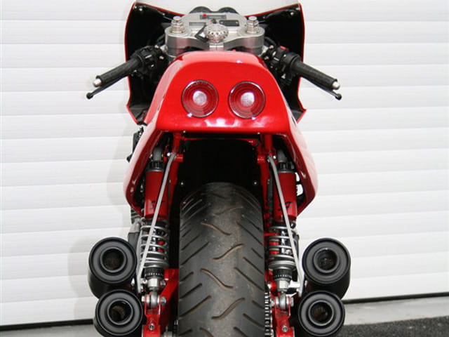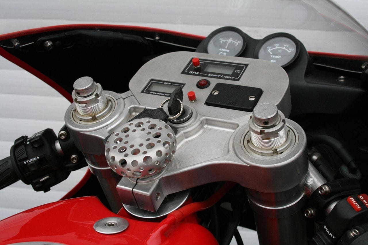 Transmisión de cinco relaciones artesanal y una atención al detalle enfermiza y exquisita a partes iguales. Podemos ver la calidad del trabajo en la tija de la dirección o en el exquisito pedal de freno. La instrumentación es completamente ad hoc, digital y analógica a partes iguales, con el objetivo de no distraer de la conducción. Algunas piezas se han terminado en fibra de carbono – como el guardabarros – para mantener a raya el peso, que se queda en unos someros 172 kg. Se estima que como consencuencia, su velocidad punta es de 265 km/h. Esta maravillosa máquina fue presentada al público en 1995, tras 3.000 horas de trabajo sobre ella.