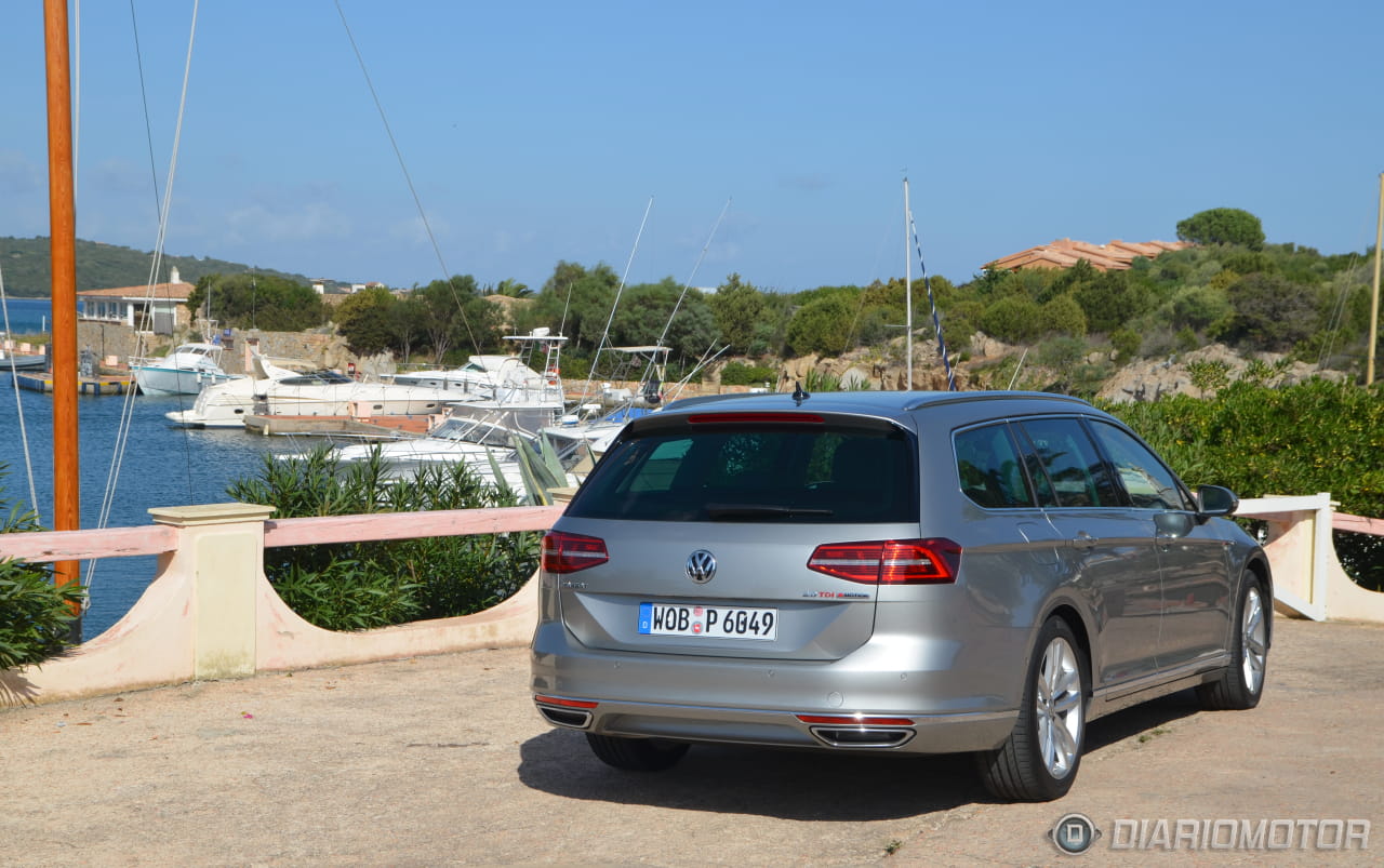 Esta alternativa mecánica queda asociada obligatoriamente al cambio DSG y la tracción total 4Motion. Sobre el primero no hay pega alguna. Digiere con conocida rapidez y suavidad cada una de las transiciones entre marchas. Sobre la segunda aún menos pegas. La tracción total 4motion actúa eficazmente sobre el firme de Cerdeña exigiéndole incluso un ritmo muy elevado en una conducción poco propia para una berlina familiar como esta.