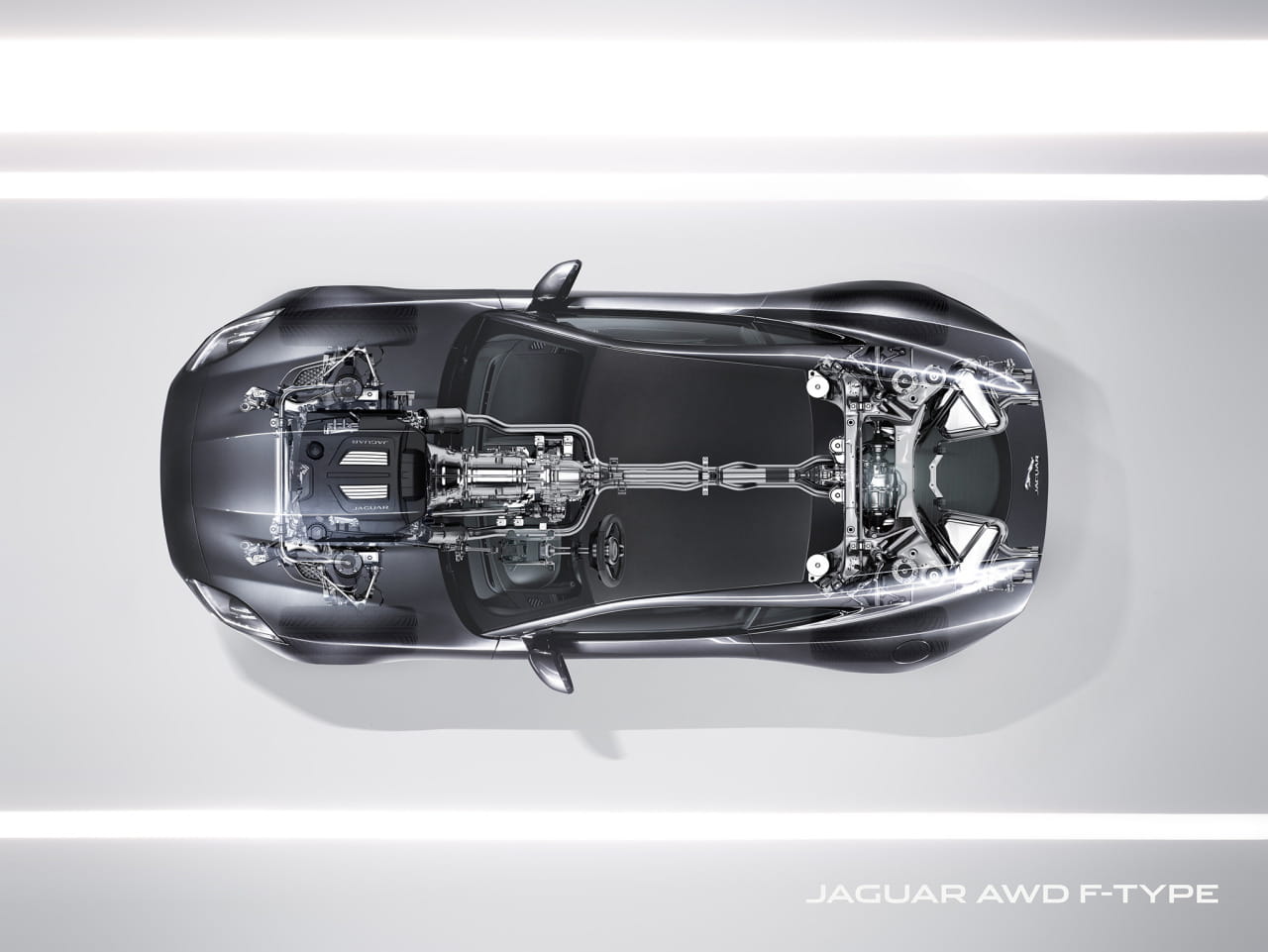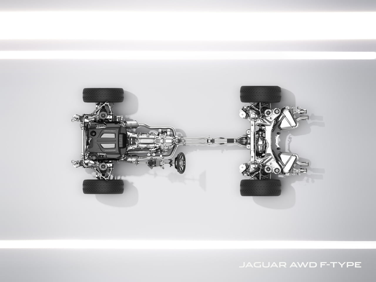 El sistema de tracción a las cuatro ruedas funciona ofreciendo, en condiciones normales, un reparto permanente de todo el 100% del par al tren trasero. Únicamente cuando la situación se complica, en pérdidas puntuales de tracción, el reparto del par se traspasa al tren delantero para corregir la situación. Es un seguro de vida adicional a los controles ya existentes en toda la gama F-Type y una idea interesante para muchos clientes.