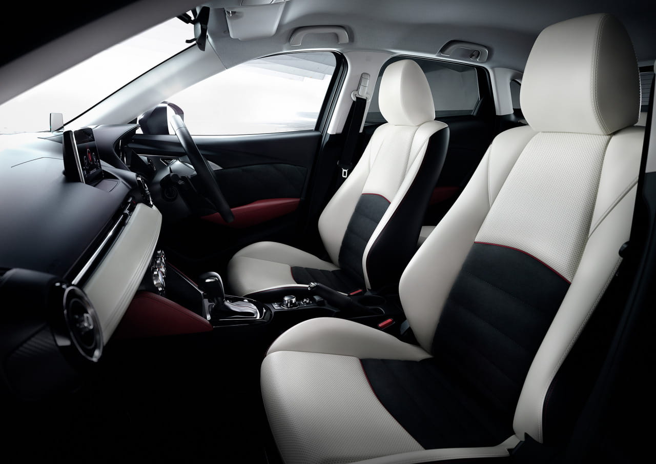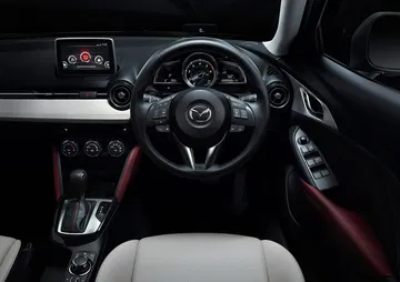 A bordo, el Mazda CX-3 nos presenta un habitáculo con toques de calidad, tapizados de piel noble en asientos, en detalles de la consola central y las puertas y en algunos revestimientos del salpicadero. Eso nos invita a pensar que el tope de gama del Mazda CX-3 buscará un posicionamiento aspirando a premium.