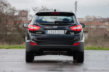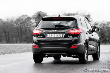 En la parte trasera de este todocamino compacto de 4,41 metros de largo se estrenan unas ópticas nuevas, que si bien no alteran la forma exterior del vehículo, estrenan tecnología LED en sus entrañas. No tenemos más que destacar en una zaga donde sólo echo de menos en movimiento una ventanilla trasera más grande. Pero es una de esas exigencias del diseño en un SUV que consiguen esa imagen aguerrida y fuerte que tanto nos gusta. El tubo de escape está camuflado en el ix35 bajo el paragolpes trasero. En general, es un diseño que encuentro interesante y que se mantiene fresco, pero presiento que puede pasar pronto de moda y ya no está en línea con el actual protocolo estilístico de Hyundai, con un nuevo Genesis por ejemplo.