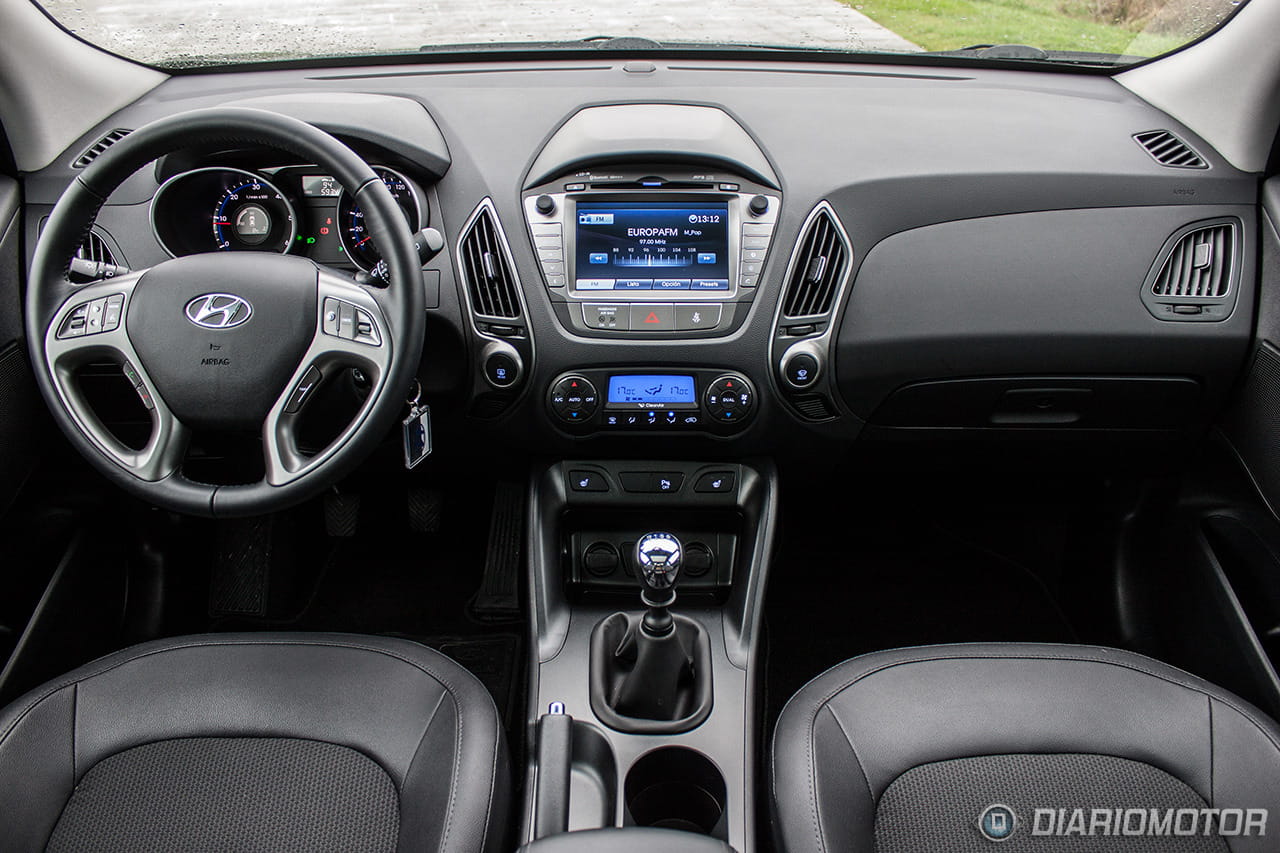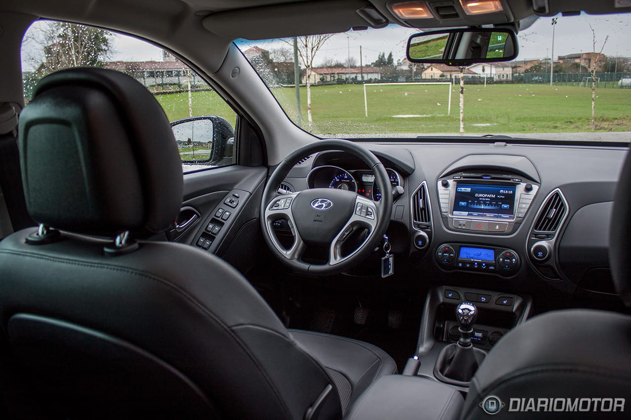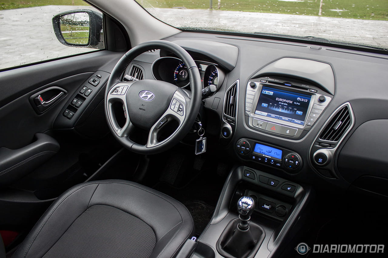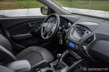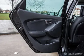 Quizá es en el interior del Hyundai ix35 donde se note un poco más el paso del tiempo, con un diseño alejado de la instrumentación minimalista y pantallas escamoteables de hoy día: todo es grande y bulboso, casi recargado. Pero con todo, resulta un habitáculo en general muy agradable, construido con materiales de calidad y con acabados más que. El plástico gomoso de la parte superior del salpicadero se integra bien con las grandes superficies de plástico duro, que sólo en las puertas están algo peor rematadas. El plástico plateado de volante y consola central parece resistente y a priori debería de soportar decentemente el paso del tiempo.