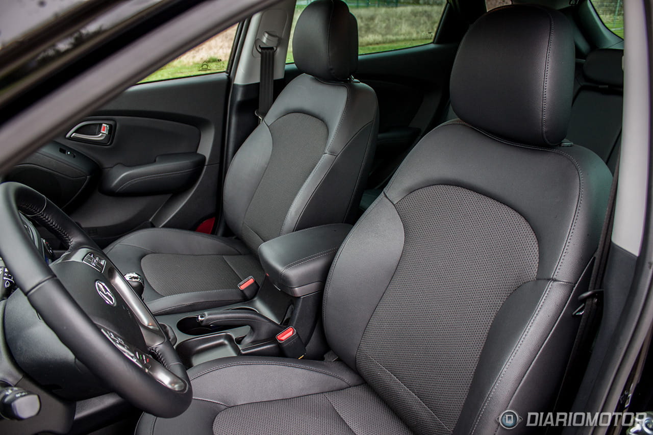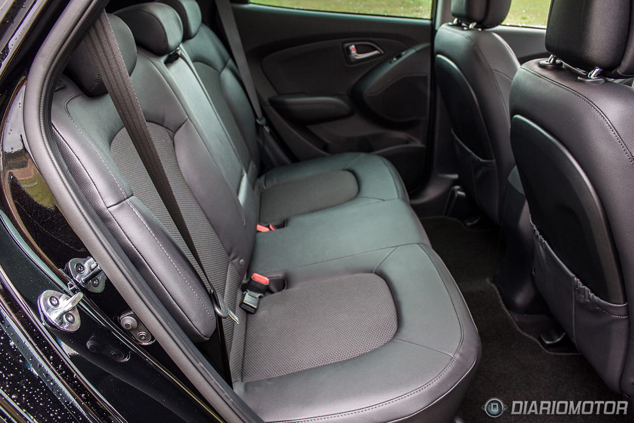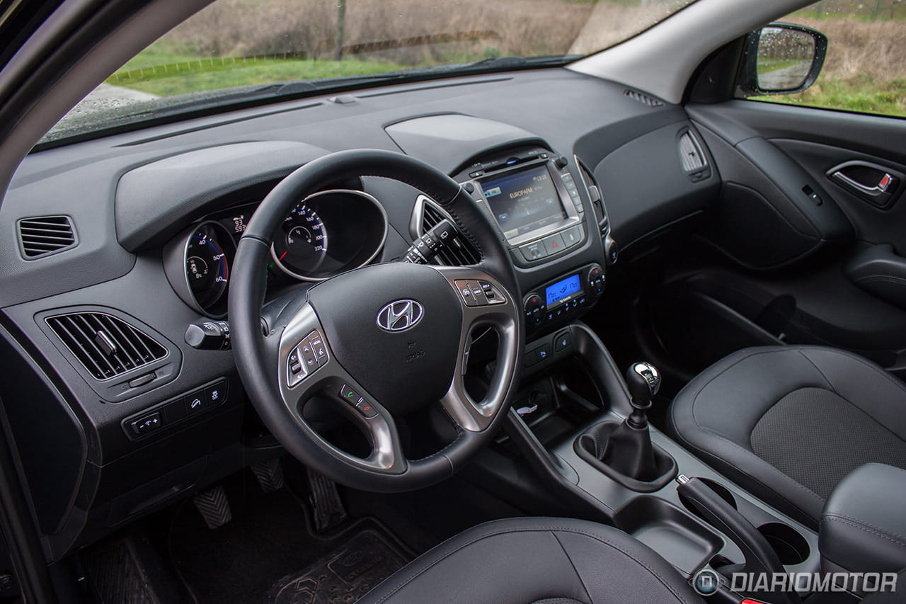 Quizá es en el interior del Hyundai ix35 donde se note un poco más el paso del tiempo, con un diseño alejado de la instrumentación minimalista y pantallas escamoteables de hoy día: todo es grande y bulboso, casi recargado. Pero con todo, resulta un habitáculo en general muy agradable, construido con materiales de calidad y con acabados más que. El plástico gomoso de la parte superior del salpicadero se integra bien con las grandes superficies de plástico duro, que sólo en las puertas están algo peor rematadas. El plástico plateado de volante y consola central parece resistente y a priori debería de soportar decentemente el paso del tiempo.