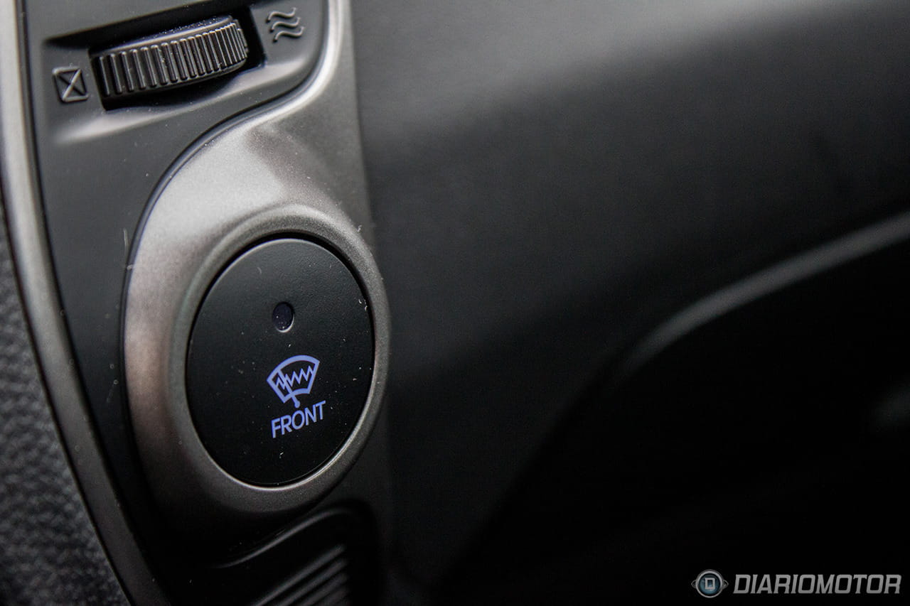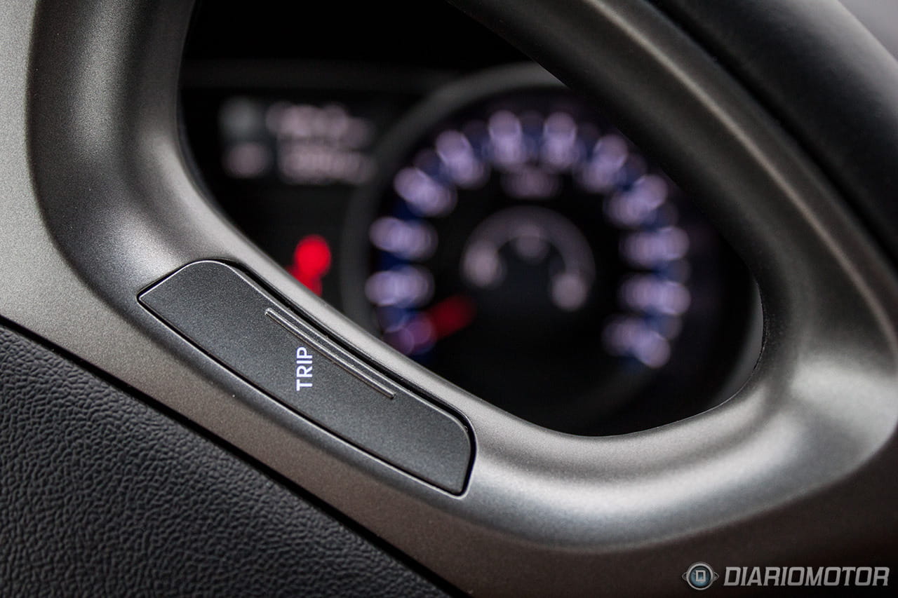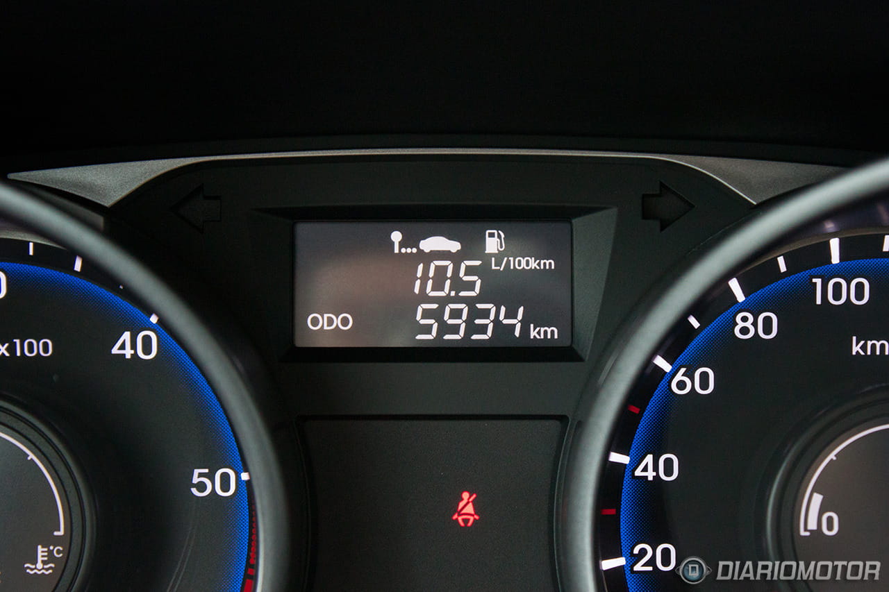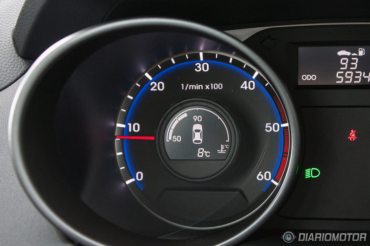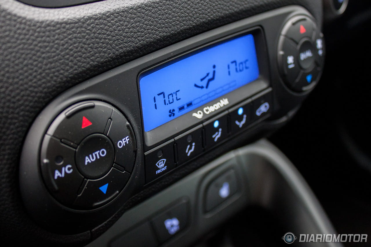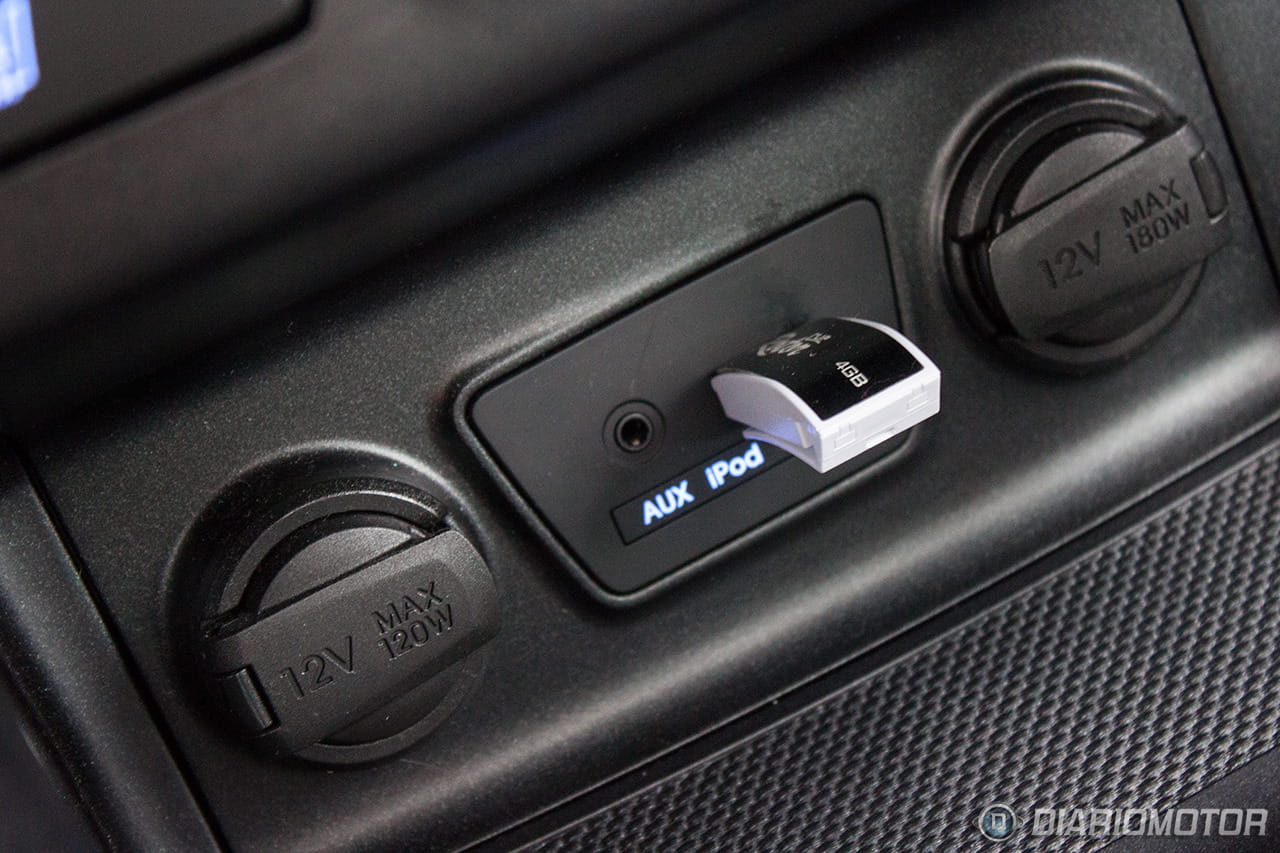 Una instrumentación de muy fácil lectura, con los justo y necesario, pero sin carencias o excesos. El ordenador de a bordo con los contadores de kilometraje podría ser más bonito, pero no hay queja alguna de su funcionalidad. El Hyundai ix35 destaca en la abundancia de huecos donde descargar nuestros bolsillos. Podríamos descargar muchas pertenencias y aún encontrar dónde situarlas: es posible incluso perderlas de tanto espacio disponible – entiéndase esto como elogio en tono jocoso. A los huecos para botellas grandes en las puertas se suma un espacio bajo la consola central considerable, forrado en goma, con tomas de corriente y la entrada auxiliar del equipo de infoentretenimiento.