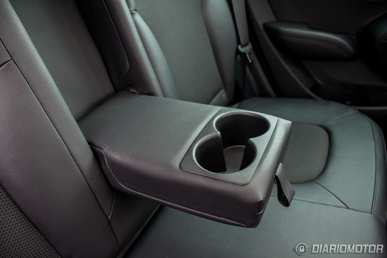 Los objetos no se caerán en curvas. Entre los asientos, dos portabebidas grandes y un reposabrazos que esconde un compartimento donde aún es posible dejar más cosas. La guantera tiene un tamaño correcto y está tanto refrigerada, como iluminada. A pesar de tener un tamaño exterior contenido, las plazas traseras del dúo ix35-Sportage son de las más amplias del segmento. Además de tener una banqueta regulable en longitud, el espacio tanto para rodillas como cabeza es monstruoso: adultos de alta estatura viajarán en Business Class en la fila trasera del heredero del Tucson.