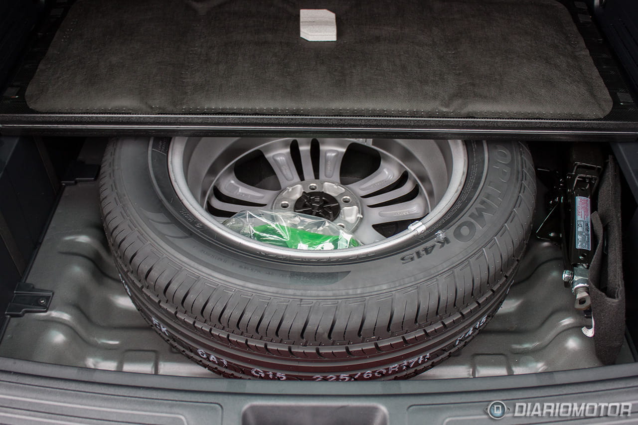 El volumen que puede albergar en esta configuración se triplica, rozando los 1.500 litros. Bajo el maletero encontramos una agradable sorpresa: una rueda de repuesto a tamaño completo con llanta de aleación. Estamos ante un detalle que evidencia la edad del vehículo, pero que nos ahorrará muchos problemas ante algo tan tonto como un reventón. Más coches deberían llevar ruedas de repuesto completas, pero no es la tendencia.