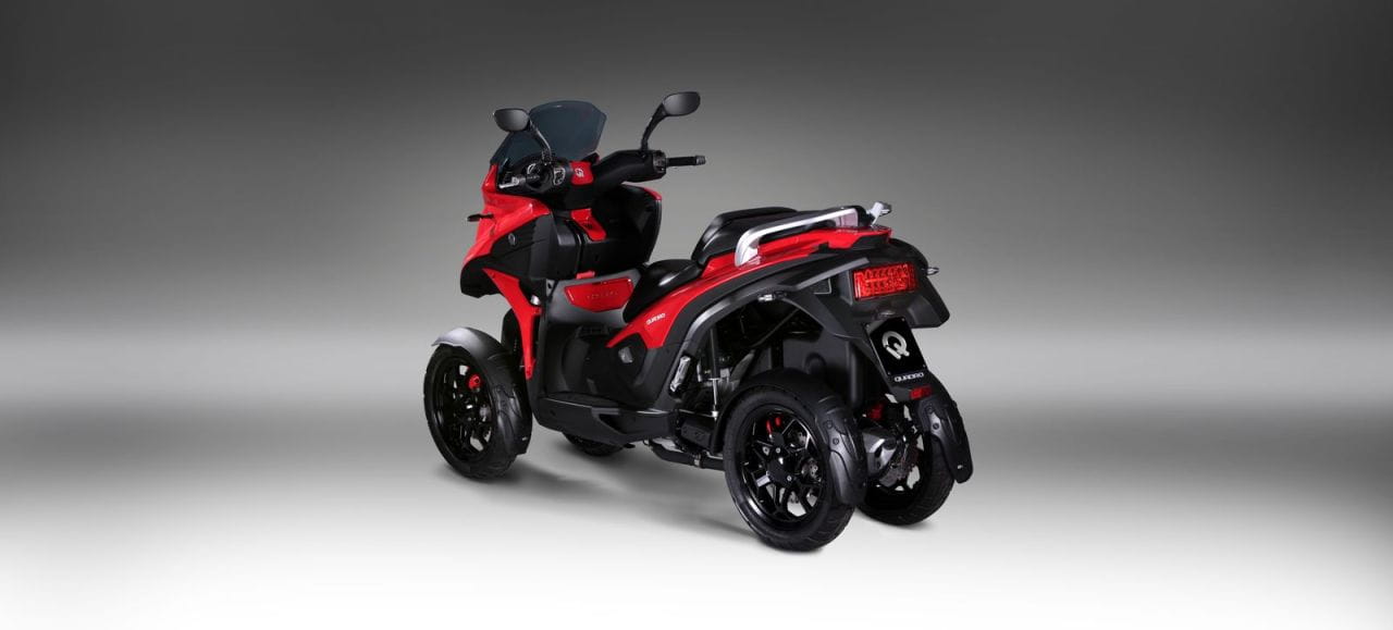 Las motos tenían dos ruedas, hasta que se inventaron los trikes y los quads. Pero la realidad es que tanto trikes como quads no pueden clasificarse como motos, al perder la agilidad y la posibilidad de inclinación que las motos sí poseen. Al menos en mi opinión. Fue entonces cuando llegó la revolución de las scooter de tres ruedas, con dos ruedas delante y una detrás. Una gran estabilidad, pero aún una gran estabilidad y mucho más de moto que de coche. El fabricante suizo Quadro da una vuelta de tuerca al concepto con su scooter de cuatro ruedas Quadro4.