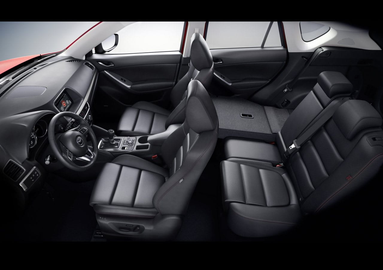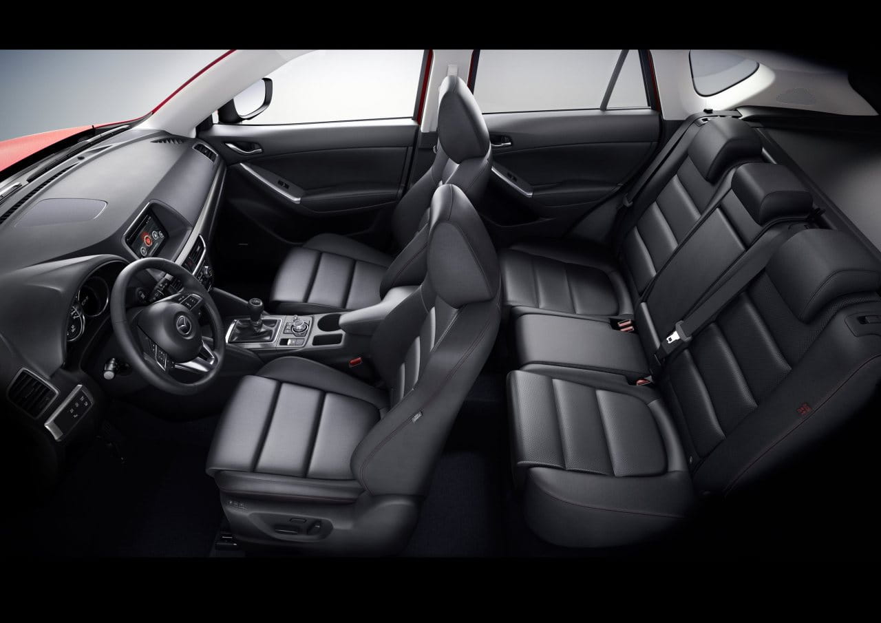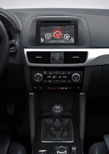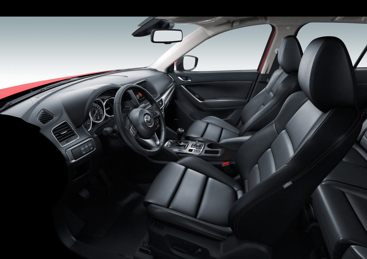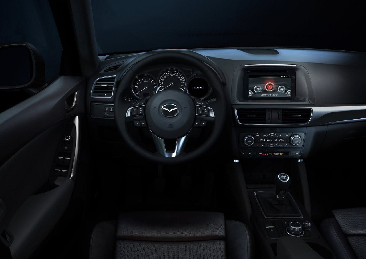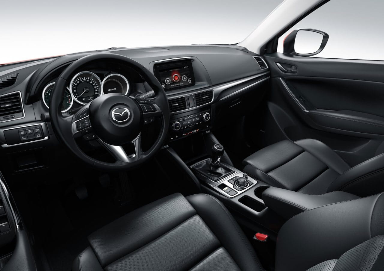 Subimos a bordo del Mazda CX-5 2015 y nos encontramos con nuevas molduras, con un freno de estacionamiento eléctrico y con un equipo de entretenimiento mejorado que sigue encapsulado en el propio salpicadero, a diferencia del nuevo Mazda 6 2015, que ha abogado por que este sobresalga del salpicadero. La consola central cuenta con más espacio de almacenamiento tras la palanca de cambios y nuevos compartimentos y huecos en las puertas delanteras. En general el diseño del habitáculo apenas ha cambiado.