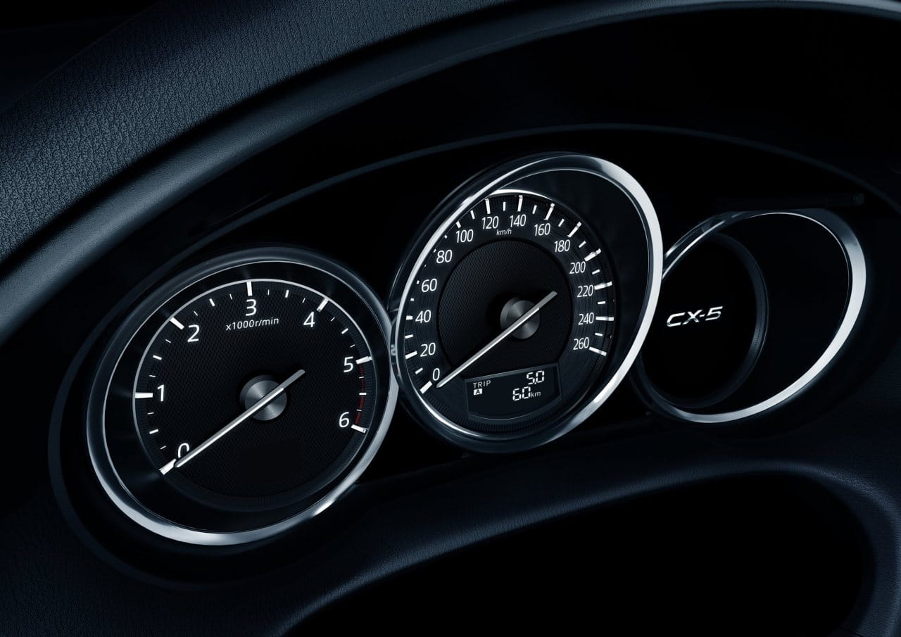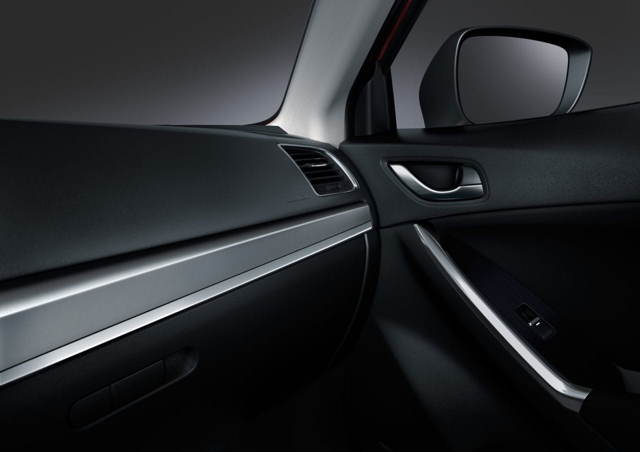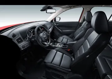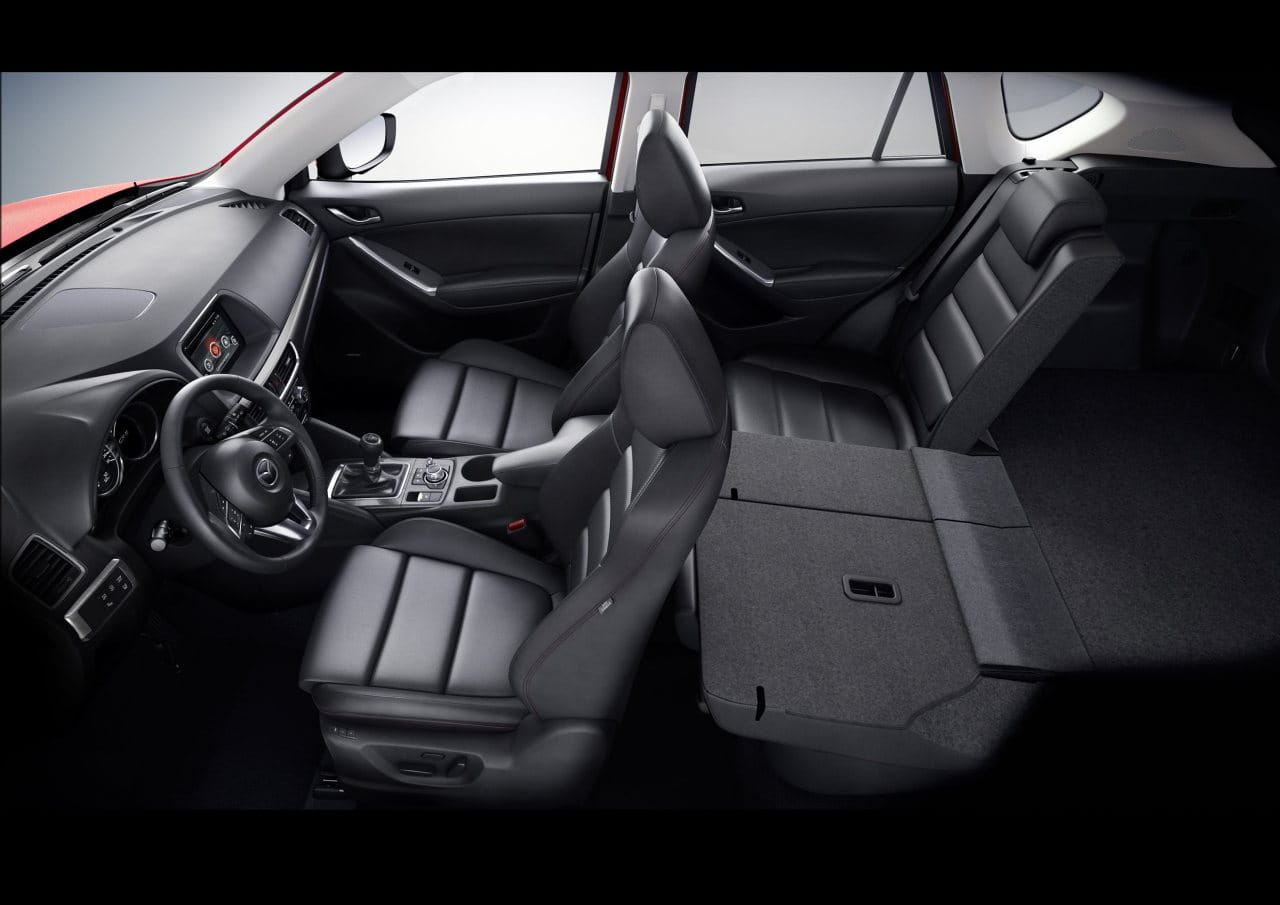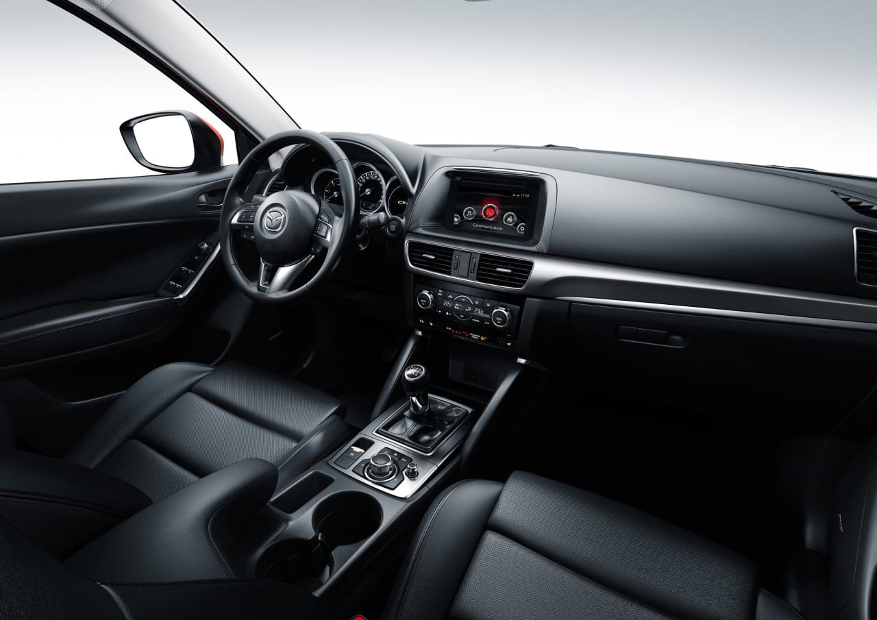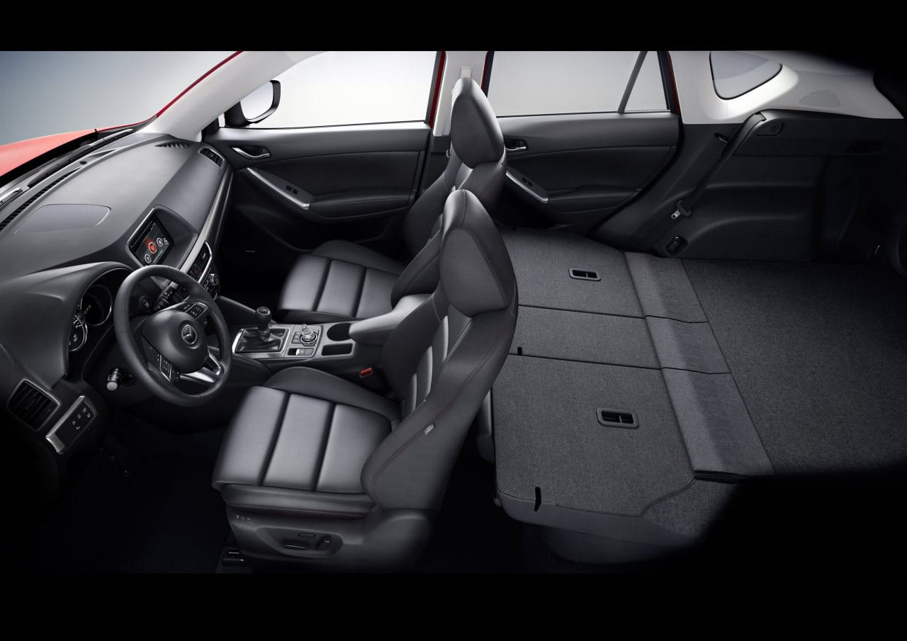 Subimos a bordo del Mazda CX-5 2015 y nos encontramos con nuevas molduras, con un freno de estacionamiento eléctrico y con un equipo de entretenimiento mejorado que sigue encapsulado en el propio salpicadero, a diferencia del nuevo Mazda 6 2015, que ha abogado por que este sobresalga del salpicadero. La consola central cuenta con más espacio de almacenamiento tras la palanca de cambios y nuevos compartimentos y huecos en las puertas delanteras. En general el diseño del habitáculo apenas ha cambiado.
