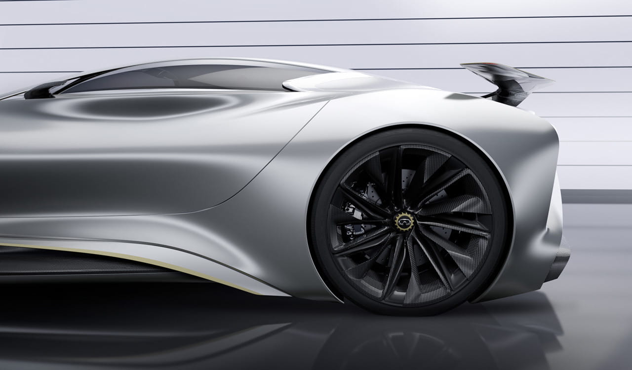 Y con la excusa de crear un prototipo para Gran Turismo nos encontramos con la bestia que ilustra este artículo. El Infiniti Concept Vision Gran Turismo sería un deportivo con motor central-delantero y tracción trasera, un V8 atmosférico de 4.5 litros, un poco más pequeño que el de 5.0 litros utilizado por el Infiniti QX70. Gozaría de tracción trasera y un cambio secuencial transaxle, la receta perfecta para lograr un buen reparto de pesos, que sería del 45:55 (delante-detrás). También contaría con la chispa de un motor eléctrico.
