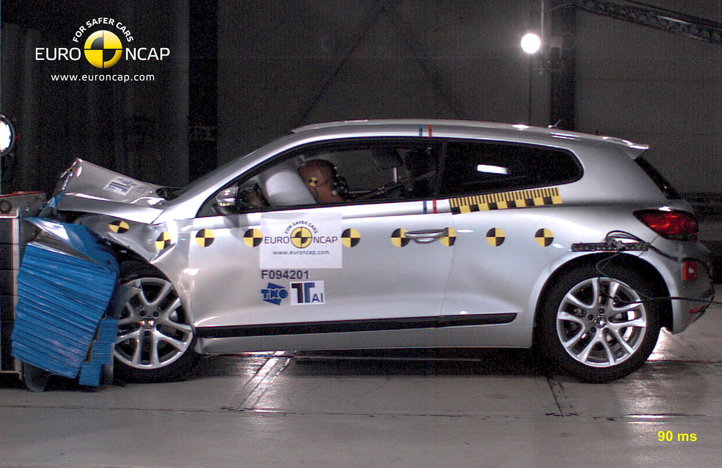 Para que un coche alcance las cinco estrellas EuroNCAP no solo tiene que superar, mantener la integridad de su estructura y proteger a los ocupantes, en las famosas pruebas de impacto, las más vistosas y conocidas. El proceso de pruebas es mucho más complejo de lo que parece, aunque la base de los resultados siga girando en torno a un impacto frontal a 64 km/h contra una barrera fija y un solapamiento del 40% (replica un choque frontal), el impacto lateral contra una barrera móvil a 50 km/h (replica un choque lateral contra otro coche) y el impacto lateral de un mástil de 25 centímetros de diámetro a 29 km/h (replica el choque lateral contra una farola).