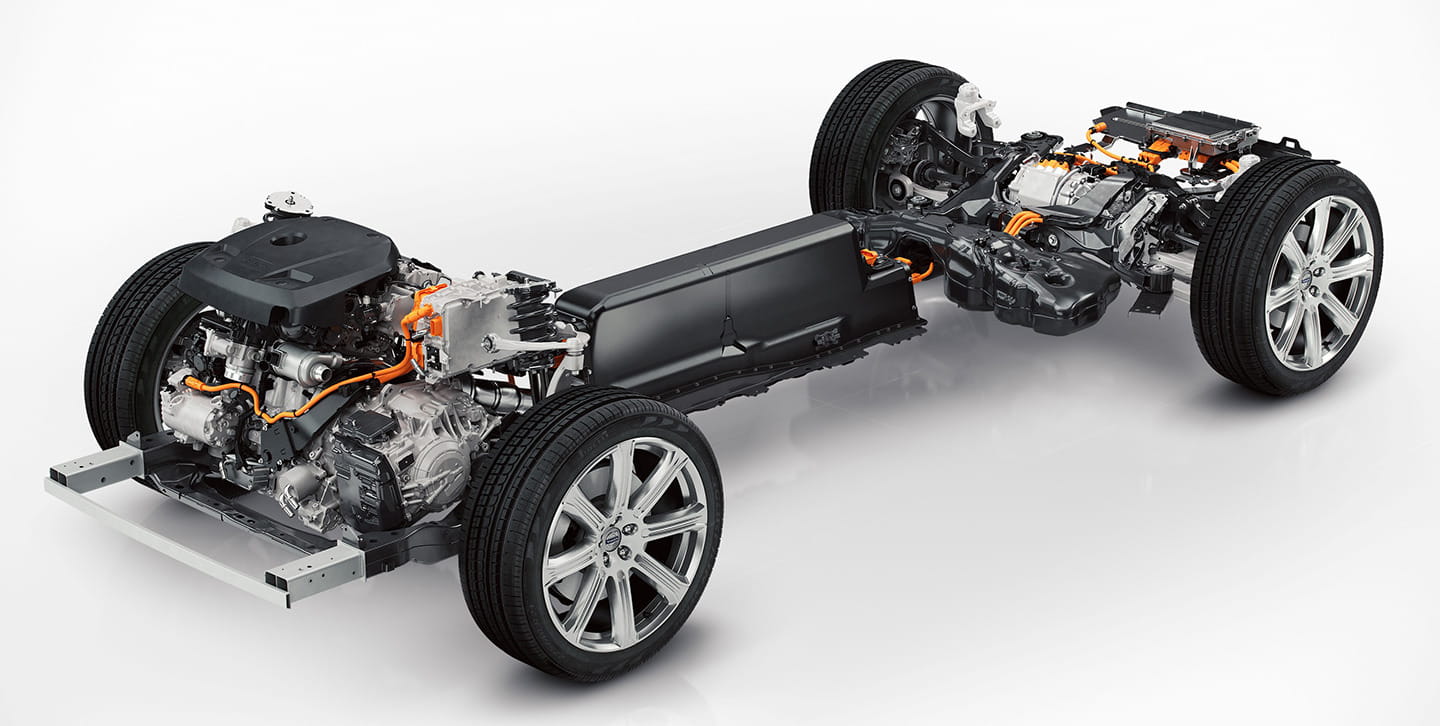 Para proporcionar motricidad a ese tren trasero, Volvo ha recurrido a un segundo motor eléctrico en la zaga. Un motor que desarrolla un total de 60 kW (82 CV) de potencia y un par máximo, instantáneo, de 240 Nm. Este motor tendrá dos funciones. La primera de ellas es apoyar al motor delantero cuando nos desplacemos en modo eléctrico puro. La segunda de ellas, apoyar al combinado de motores cuando queramos alcanzar las máximas prestaciones posibles, para llegar a su máximo de 400 CV. Evidentemente existirá una tercera función, la de proporcionarnos motricidad en el tren trasero para mejorar la estabilidad en carretera y, sobre todo, poder salir de apuros, como una carretera cubierta de nieve o una pista de campo complicada.
