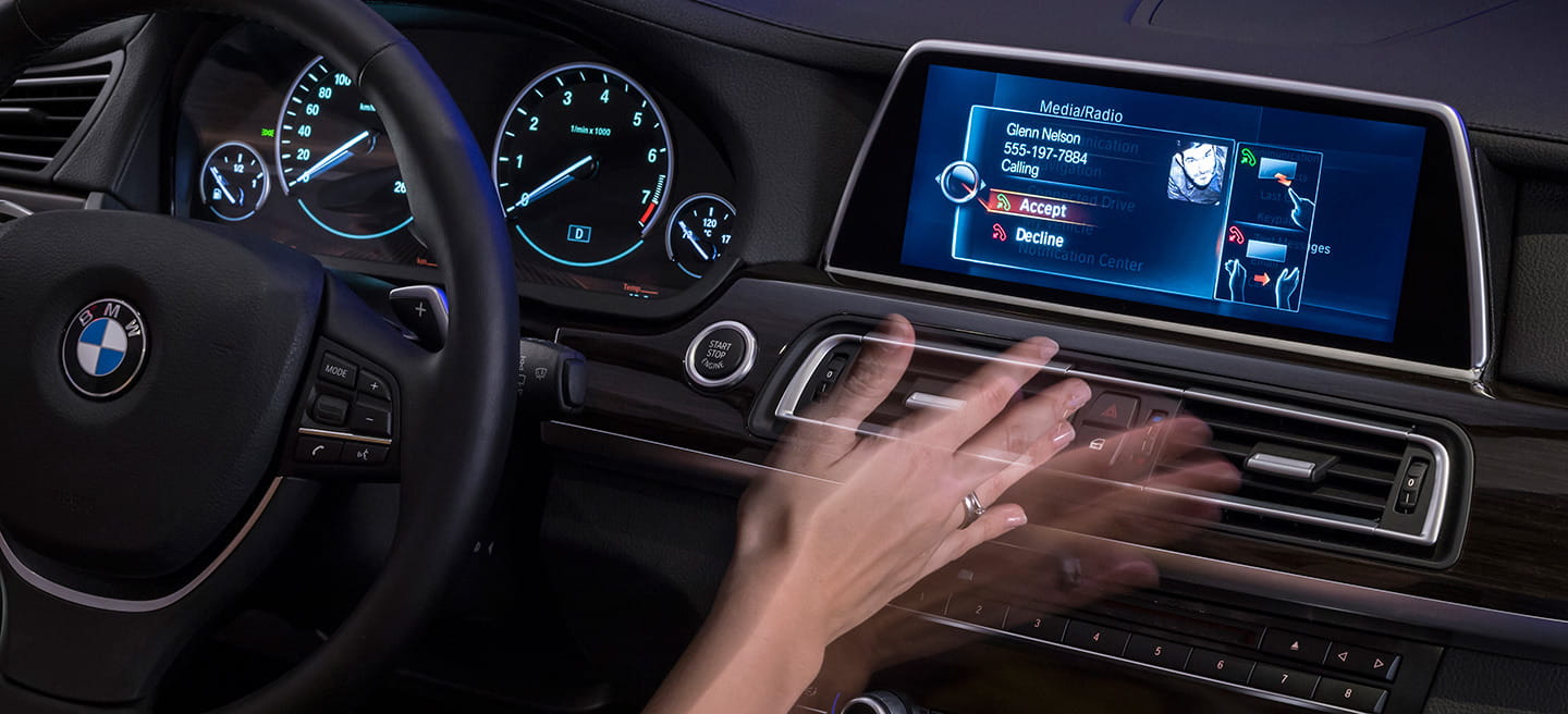 El funcionamiento del sistema gestual se basaría en un sensor instalado en el techo que será capaz de detectar la posición de las manos y de cada dedo, e interpretar el movimiento para reconocer si el gesto supone un desplazamiento, una rotación o un clic. El área «caliente» en el que el nuevo BMW ConnectedDrive reconocería nuestros movimientos de manos se encontraría en el espacio que se sitúa entre el volante, la palanca de cambios y la pantalla del equipo de entretenimiento. Al introducir una dirección en el navegador o realizar otra acción, si situamos la mano en este área se desplegaría un teclado que podremos manipular con el contacto directo sobre la pantalla o con el movimiento de nuestra mano sobre el aire.
