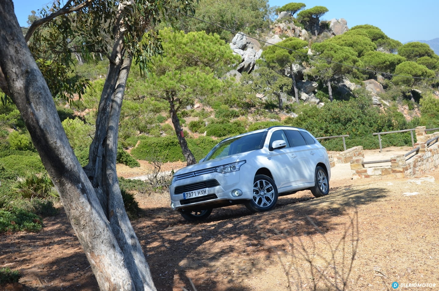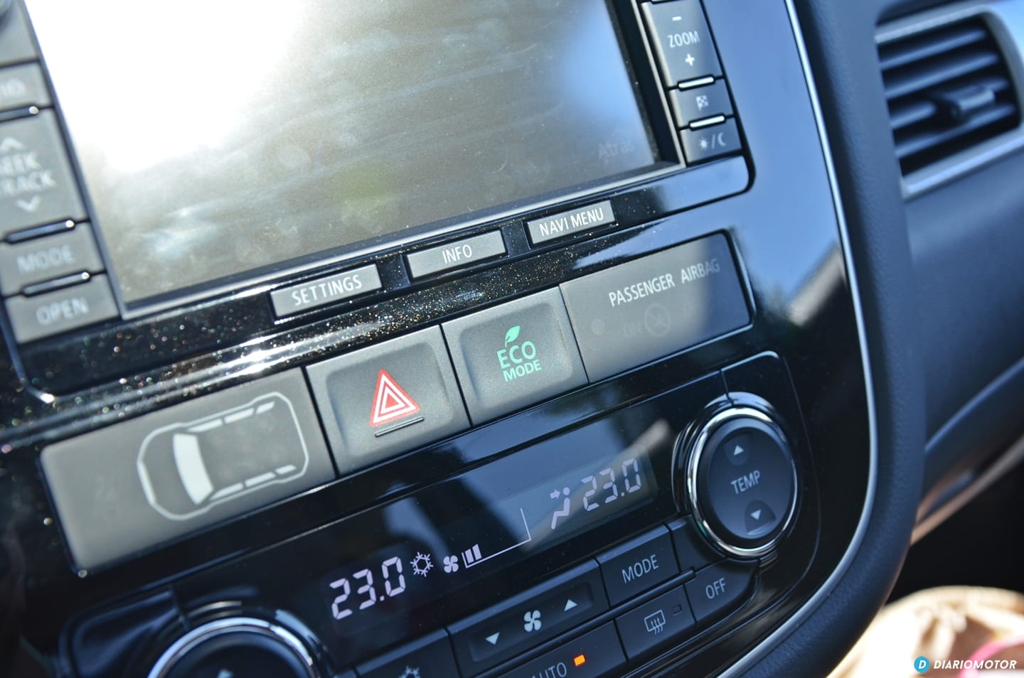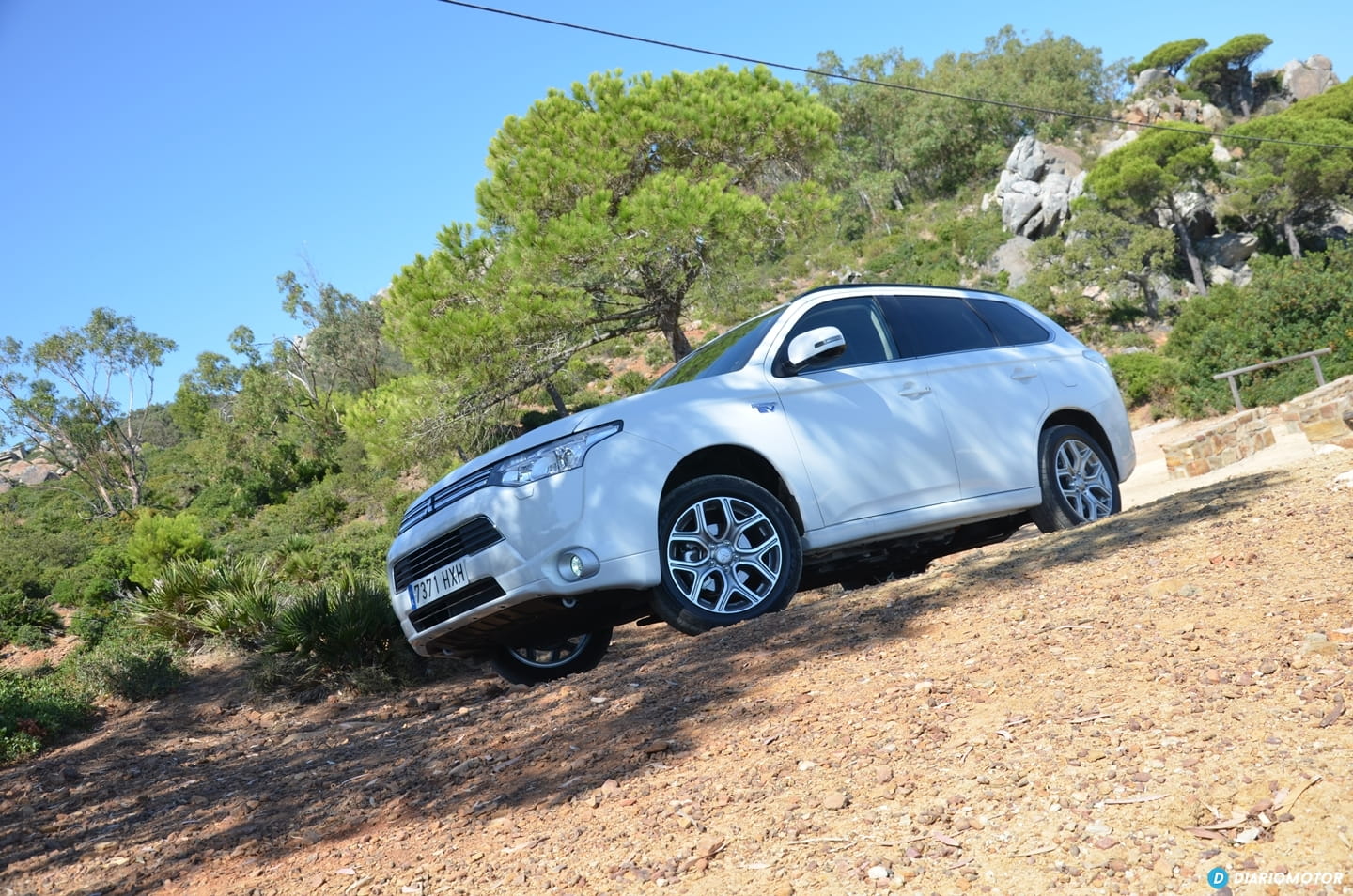 Dicho esto, es momento de descubrir cómo se desenvuelve el Mitsubishi Outlander PHEV fuera de las urbes, que a priori parece ser el escenario predilecto de este SUV. Lo primero que debemos tener en cuenta es el planteamiento de su grupo motopropulsor, es único, muy peculiar y asombrosamente práctico. Aunque la ausencia de múltiples palancas y botones haga parecer que este SUV palidecerá en terrenos complicados, la práctica nos ha demostrado que sus dos ejes eléctricos son sobradamente capaces de soportar desniveles y terrenos mucho más abruptos que sencillos caminos de tierra.