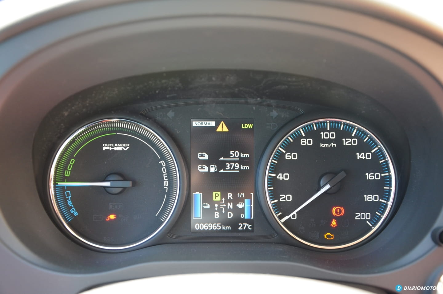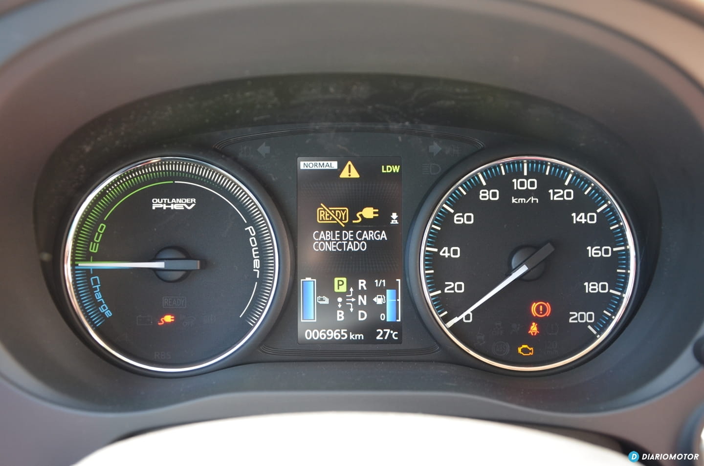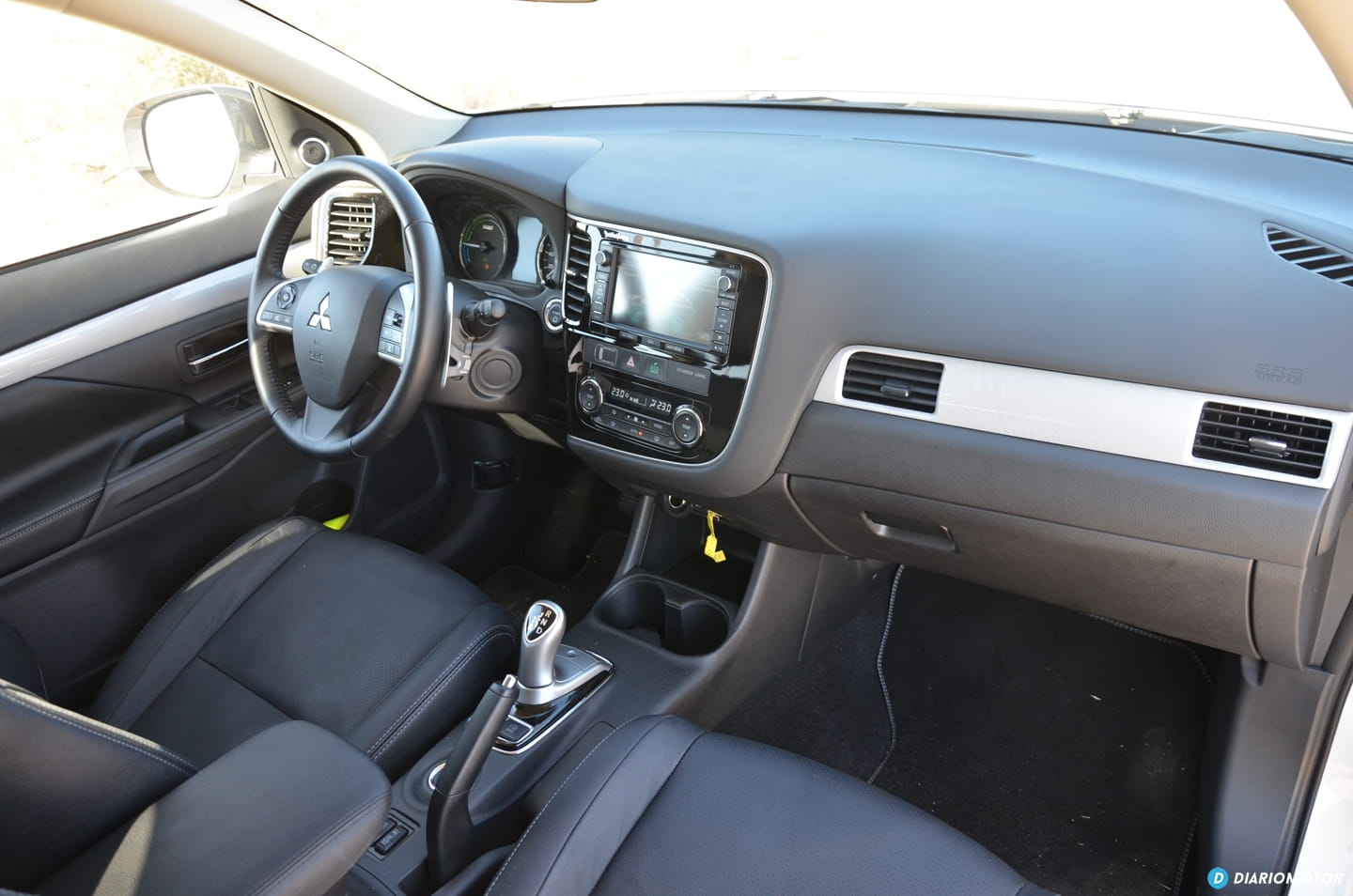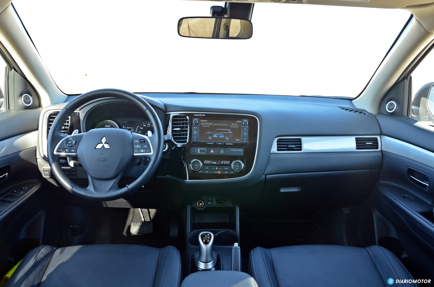 Dicho esto, es momento de descubrir cómo se desenvuelve el Mitsubishi Outlander PHEV fuera de las urbes, que a priori parece ser el escenario predilecto de este SUV. Lo primero que debemos tener en cuenta es el planteamiento de su grupo motopropulsor, es único, muy peculiar y asombrosamente práctico. Aunque la ausencia de múltiples palancas y botones haga parecer que este SUV palidecerá en terrenos complicados, la práctica nos ha demostrado que sus dos ejes eléctricos son sobradamente capaces de soportar desniveles y terrenos mucho más abruptos que sencillos caminos de tierra.