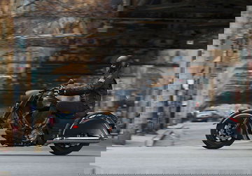 Con respecto a otras Indian Chief también suprime la plaza del pasajero, por lo que será una experiencia solitaria. El grafismo del depósito de combustible – ojo, de nada menos que 20 litros de capacidad, con una autonomía de unos 250 km – es monocromo y retiene la instrumentación analógica-digital de las Chief. Al igual que las Harley-Davidson, el arranca se realiza mediante botón y no es necesario más que llevar la llave en nuestro bolsillo. El gigantesco escape doble es el único detalle cromado de una moto muy oscura, que se ha presentado en las calles de Chicago, un ambiente de lo más idóneo para su sesión oficial de fotos.