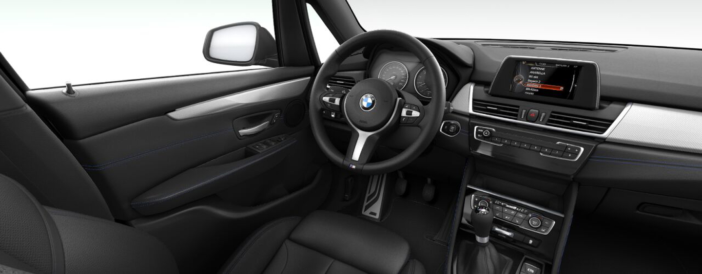Este paquete M añade al equipamiento de serie del BMW Serie 2 Gran Tourer una nueva dotación de llantas de 17 pulgadas, asientos deportivos con tapicería en cuero (con diferentes tonalidades disponibles), suspensión deportiva M, ayuda al aparcamiento trasero, control de crucero con función de frenado, una línea negra sustituyendo a la franja cromada que recorre el marco de sus ventanillas, el kit aerodinámico M (paragolpes y taloneras), faros antiniebla, un volante M y el techo interior acabado en un tono antracita.