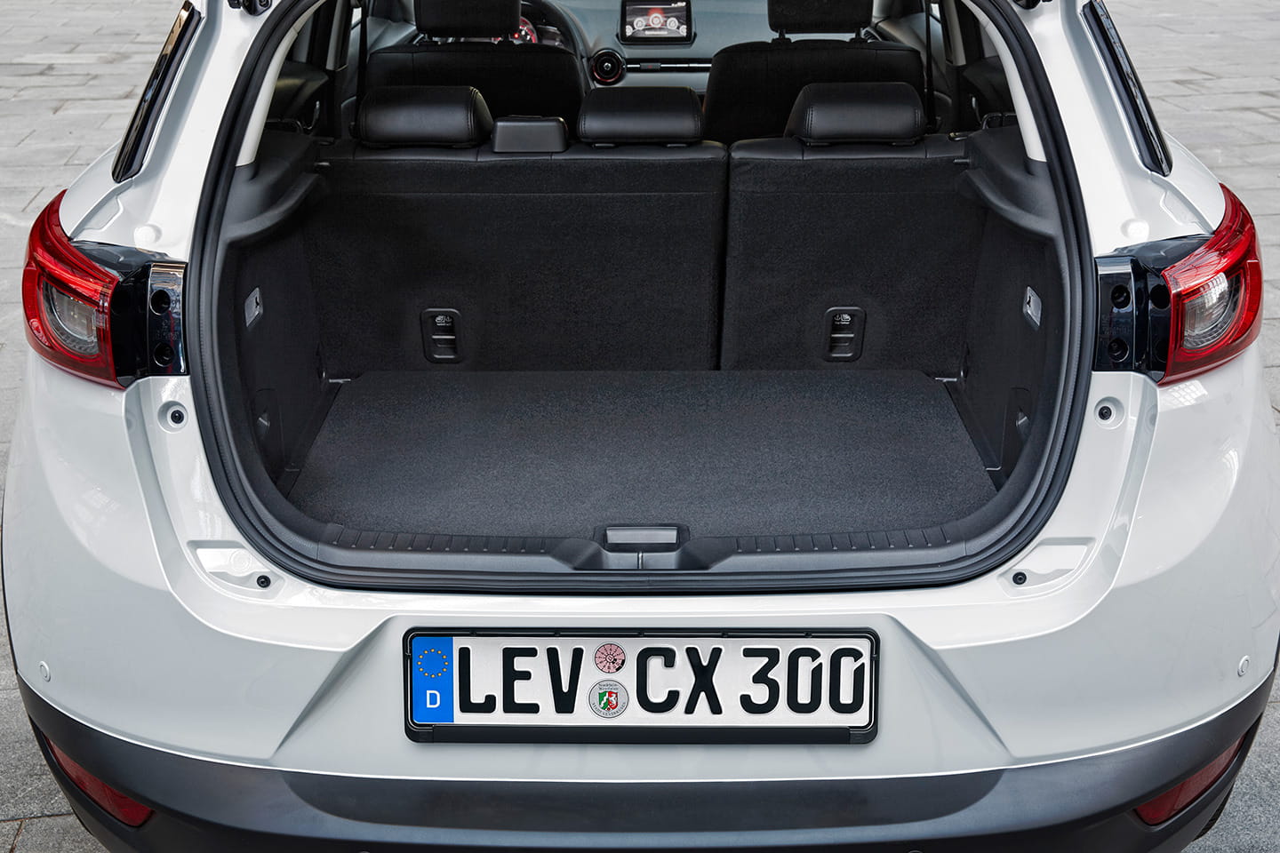 Dato número 1. El Mazda CX-3 estará disponible con una gama realmente amplia, incluida versiones que podríamos considerar «raras» en su categoría, como un CX-3 de tracción delantera y cambio automático. Dato número 2. Será uno de los vehículos más ahorradores de su categoría. El diésel parte de un consumo homologado de 4.0 litros/100 kilómetros, con tracción delantera. Sin necesidad de tecnologías más complejas, como un doble embrague, el 2.0 SKYACTIV-G con cambio automático homologará una décima menos (en litros/100 kilómetros) que el manual. Dato número 3. Es uno de los b-SUV más ligeros, probablemente el que más (1.200 kilogramos en orden de marcha para el diésel).