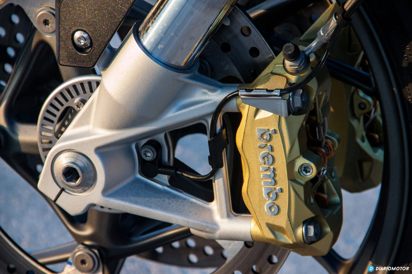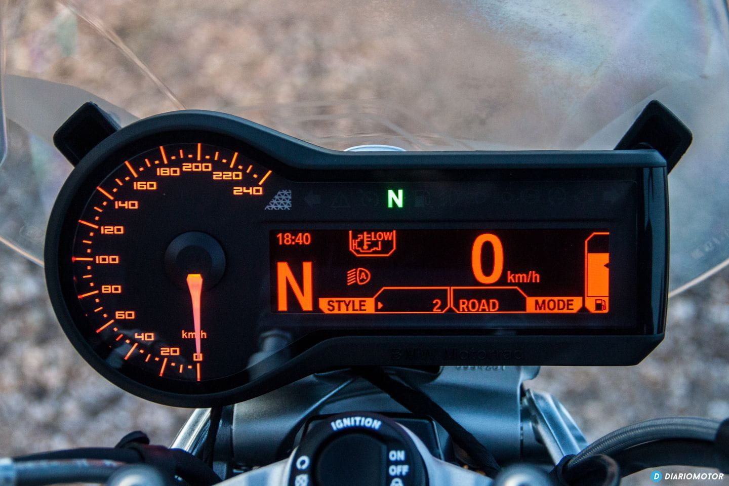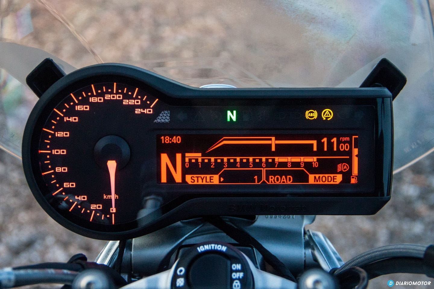 El equipo de frenado también está firmado por una marca de renombre: Brembo. El doble disco delantero de 320 mm está abrazado por enormes pinzas Brembo de seis pistones, mientras que el disco trasero de 276 mm está abrazado por una pinza de doble pistón. El ABS es de serie, por supuesto. De la suspensión electrónica ajustable Dynamic ESA y de los diferentes modos del control de tracción DTC os hablaremos en la segunda parte de la prueba, pero ya os puedo anticipar que la electrónica es una parte clave de la BMW R 1200 R, una parte en donde se desmarca completamente de su competencia. Es una moto cuya filosofía es imposible de conocer sin haberla probado, y una moto realmente peculiar en muchos aspectos. Nuestra moto nos espera ya ronroneando al ralentí. Si queréis pasároslo tan bien como nosotros, pasaos por Diariomotor mañana mismo.