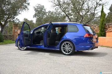 Con respecto al Volkswagen Golf R en su carrocería de tres o cinco puertas, la carrocería Variant mantiene los mismos elementos estéticos que definen este acabado. Los cambios se centran en su trasera con un paragolpes más deportivo diseñado para cobijar las cuatro salidas de escape, barras de techo cromadas y spoiler sobre el cristal para identificar que estamos ante un Golf Variant R. A nivel estético encontramos un matiz deportivo, sin embargo la sobriedad de los modelos Volkswagen sigue vigente en esta carrocería.