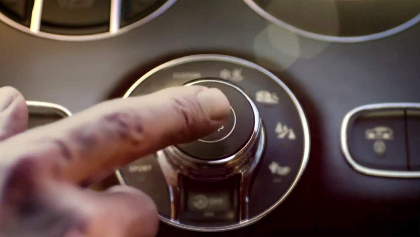 Fíjate en esta imagen. El botón de arranque y detención del motor, que estará en el centro de la consola, contará con una interfaz giratoria que al pasar el dedo nos permitirá navegar entre los diferentes modos de conducción del Bentley Bentayga. Recordemos que es un SUV, que quiere salir de la carretera, de ahí que se aprecie el icono de un copo de nieve o de un coche proyectando grava para seleccionar modos de baja adherencia y conducción off-road.