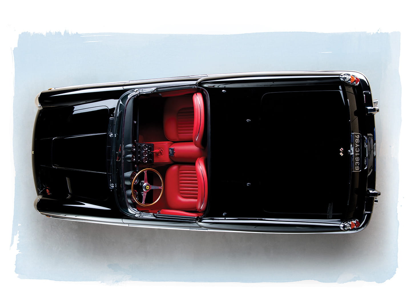 Concretamente este Ferrari 400 Superamerica SWB Cabriolet de Pininfarina, producido en marzo de 1962, esconde otras historias interesantes. Su motor se basaba en un V12 con tres carburadores Weber y 340 CV. Cuenta con techo rígido desmontable y de alguna forma es una pieza muy especial.
