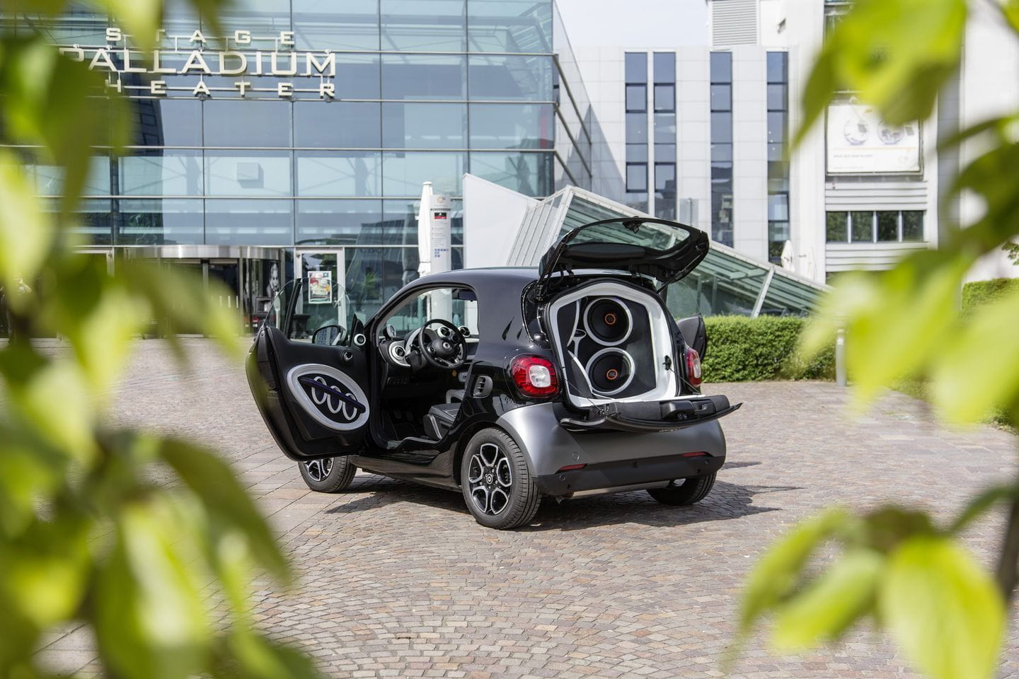El smart forgigs es un one-off, un coche único que no se producirá en serie. JBL y smart lo exhibirán en diferentes eventos a nivel promocional. JBL ofrece equipos de sonido opcionales en los smart fortwo y smart forfour de serie.