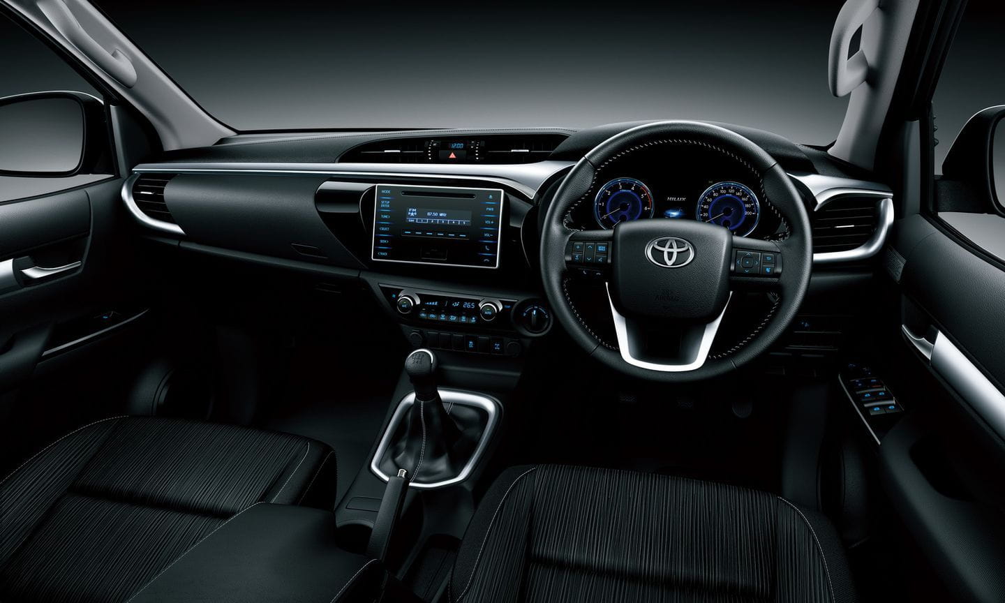 Las versiones de más alta gama – entre acabados, carrocerías, motores y formas de propulsión habrá más de 30 versiones diferentes – tendrán cuero de alta calidad, un volante con paspuntado de colores y una pantalla táctil para un sistema de infoentretenimiento de amplia conectividad. ¡Quién diría que el Hilux del futuro iba a ser un coche con tanta tecnología! El interior es indudablemente más refinado, pero retiene un esquema orientado a la practicidad y desde luego no será tan bonito en las versiones de acceso, donde reinará el plástico oscuro. Con todo, es un paso adelante.