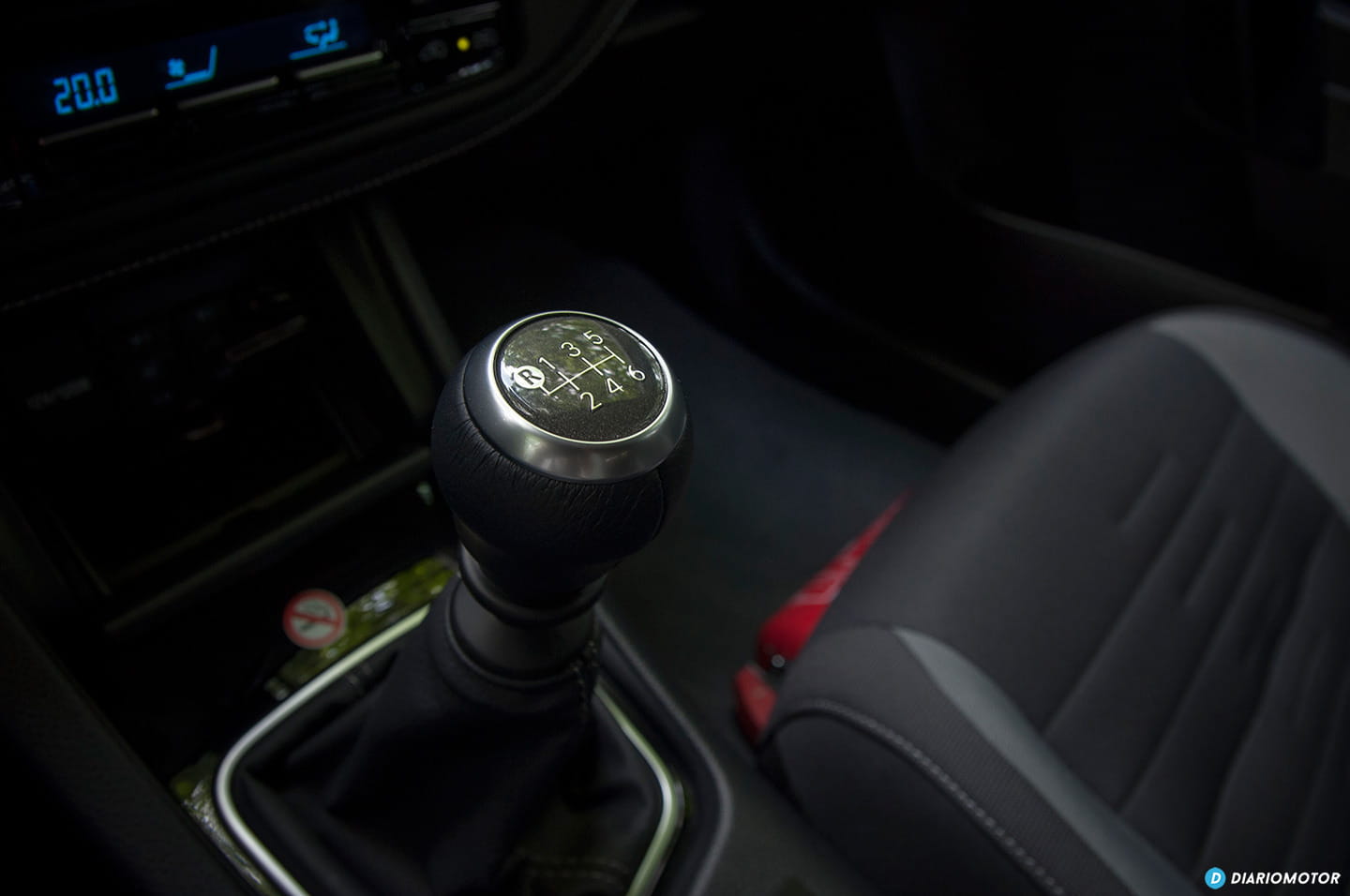 Y lo cierto es que la sensación de calidad es buena. Hay aspectos mejorables, como los materiales utilizados en la consola central del híbrido, que por la posición del pomo del cambio – estilo Toyota Prius – difiere ligeramente de las versiones no híbridas, ya sean con cambio automático o manual. Hay otras soluciones que nos gusta cómo se han rematado, como la parte superior del salpicadero, en la que Toyota ha optado por acabados con ligero mullido o granulado evitando el socorrido y sufrido negro piano.