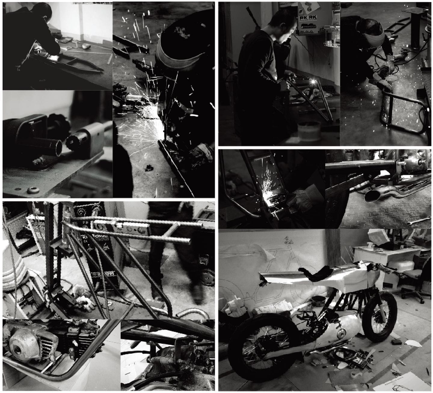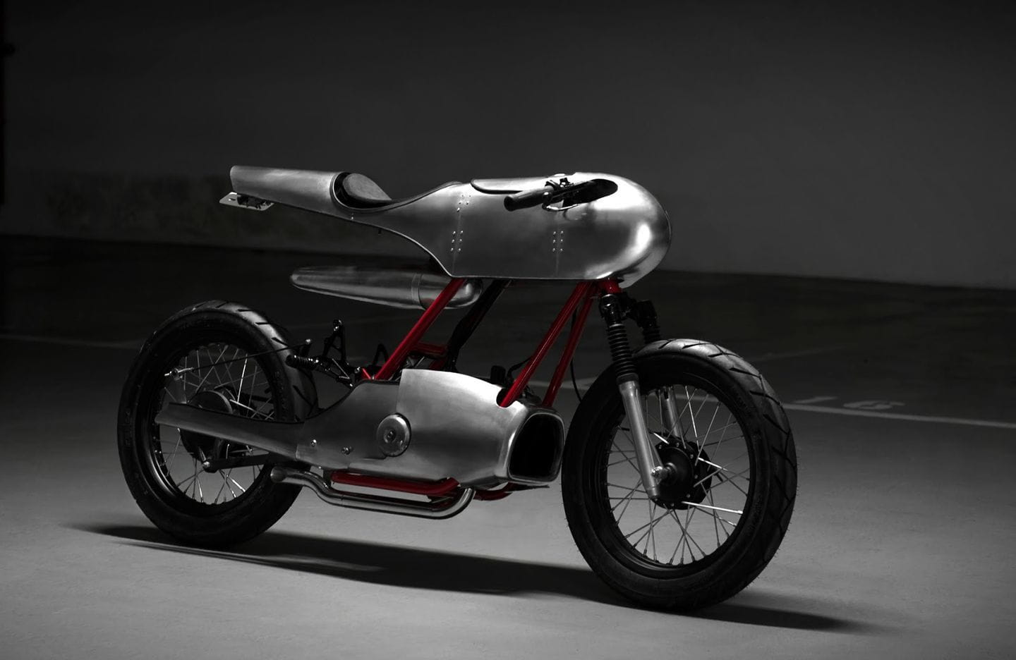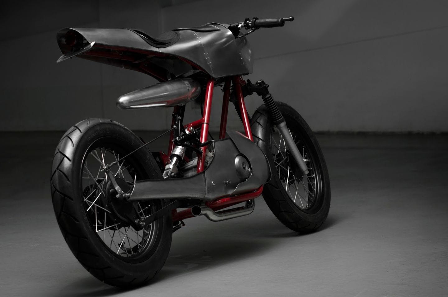Todo comenzó con una Honda Super Cub 90. Una moto utilitaria, que en Taiwan es ubicua hasta decir basta. Producida localmente, hay literalmente miles zumbando por las calles de Taipei todos los días. Esta moto fue destripada de todos sus elementos, hasta el punto de que la moto que ocupa vuestras pantallas sólo retiene las ruedas y el motor como elementos originales. La modificación más obvia es el nuevo chasis tubular, construido, pintado y soldado a mano por parte de un taller local llamado Motor Shows, especializado en preparaciones.