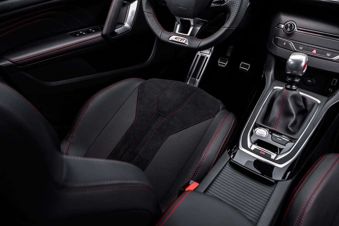 A bordo no hay grandes sorpresas. El Peugeot 308 GTi preserva su famoso i-Cockpit, un diseño de cuadro de mandos en el que el volante se encuentra más bajo de lo habitual para contemplar la instrumentación por encima de este, sin desviar demasiado la mirada de la carretera. Gozará de un volante deportivo, pequeño (351 x 329 milímetros) y acahatado por la base, costuras rojas, detalles cromados, y en general una estética muy deportiva. Estética que aún podremos mejorar con los asientos deportivos de Peugeot Sport que ofrecerá de serie el Peugeot 308 GTI 270, tapizados en piel y Alcantara.