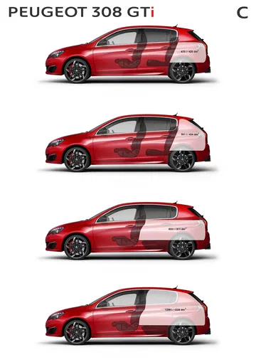Pero a sabiendas de que siempre estará aquel que busque una imagen aún más agresiva y exótica de su Peugeot 308 GTi, los galos han apostado por una idea tan atrevida como esperada. En su versión más potente, la de 270 CV – a la que nos referiremos a partir de ahora como Peugeot 308 GTi 270 – estará disponible con un acabado de pintura denominado Coupé Franche, que no es otra cosa que un acabado en dos tonos, basado en la combinación del rojo Ultimate Red (en los dos tercios delanteros) y el negro Perla Nera Black (en el tercio trasero del coche).