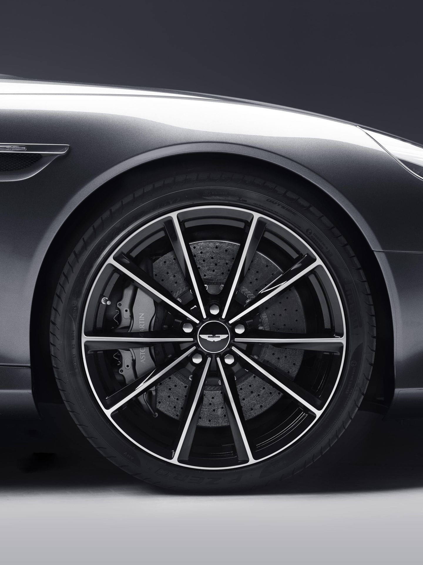 Los cambios del Aston Martin DB9 GT se centran en detalles estéticos. En su exterior nos encontramos llantas de 20 pulgadas de nuevo diseño, el difusor trasero y el splitter delantero pintados en color negro, además de unas ópticas ligeramente modificadas. Las pinzas de freno también se pintan en color negro y diversos emblemas con el nombre del modelo se reparten por su carrocería. Por supuesto, la personalización no tiene límites, y el dueño podría encargar a la fábrica un coche con una estética hecha a su medida.