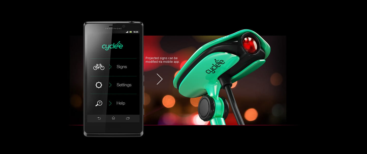 Cyclee se basaría en un proyector que se instala en la tija del sillín. Sería un proyector ligero y cómodo, que estaría orientado sobre la espalda del ciclista. Contaría con un sistema con capacidad inalámbrica para conectarlo con nuestro smartphone y proceder a actualizar su software o incluso modificar los iconos.