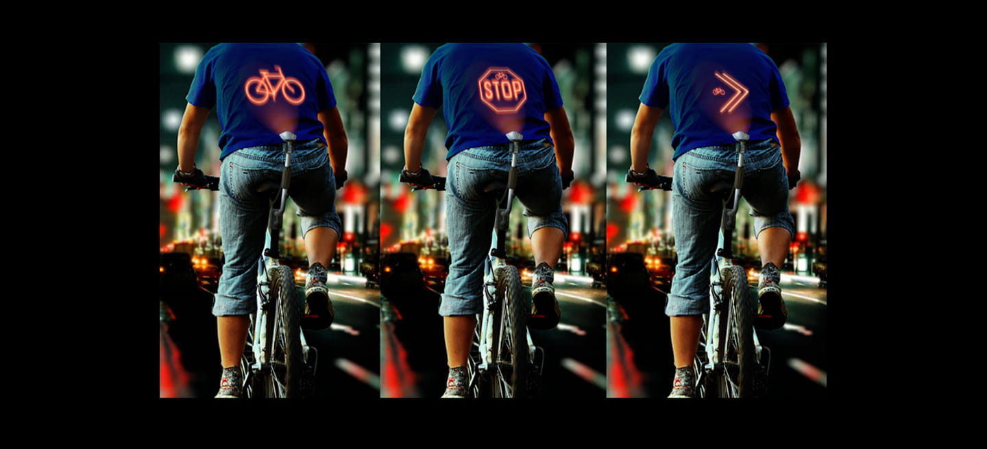 Hemos visto a ciclistas con cascos inteligentes, conectados a la red y a otros vehículos, rociados de pintura reflectante que brilla en la oscuridad, y ahora un diseñador industrial – Elnur Babayev de Azerbaijan – nos propone que los ciclistas utilicen su espalda a modo de superficie sobre la que proyectar pictogramas que indicarán al resto de vehículos con los que compartimos la vía la acción que estamos realizando o que vamos a realizar a continuación. Una idea aparentemente tan sencilla como eficaz. Se llama Cyclee y muy pronto podríamos verlo en la calle (ver proyecto en Behance).